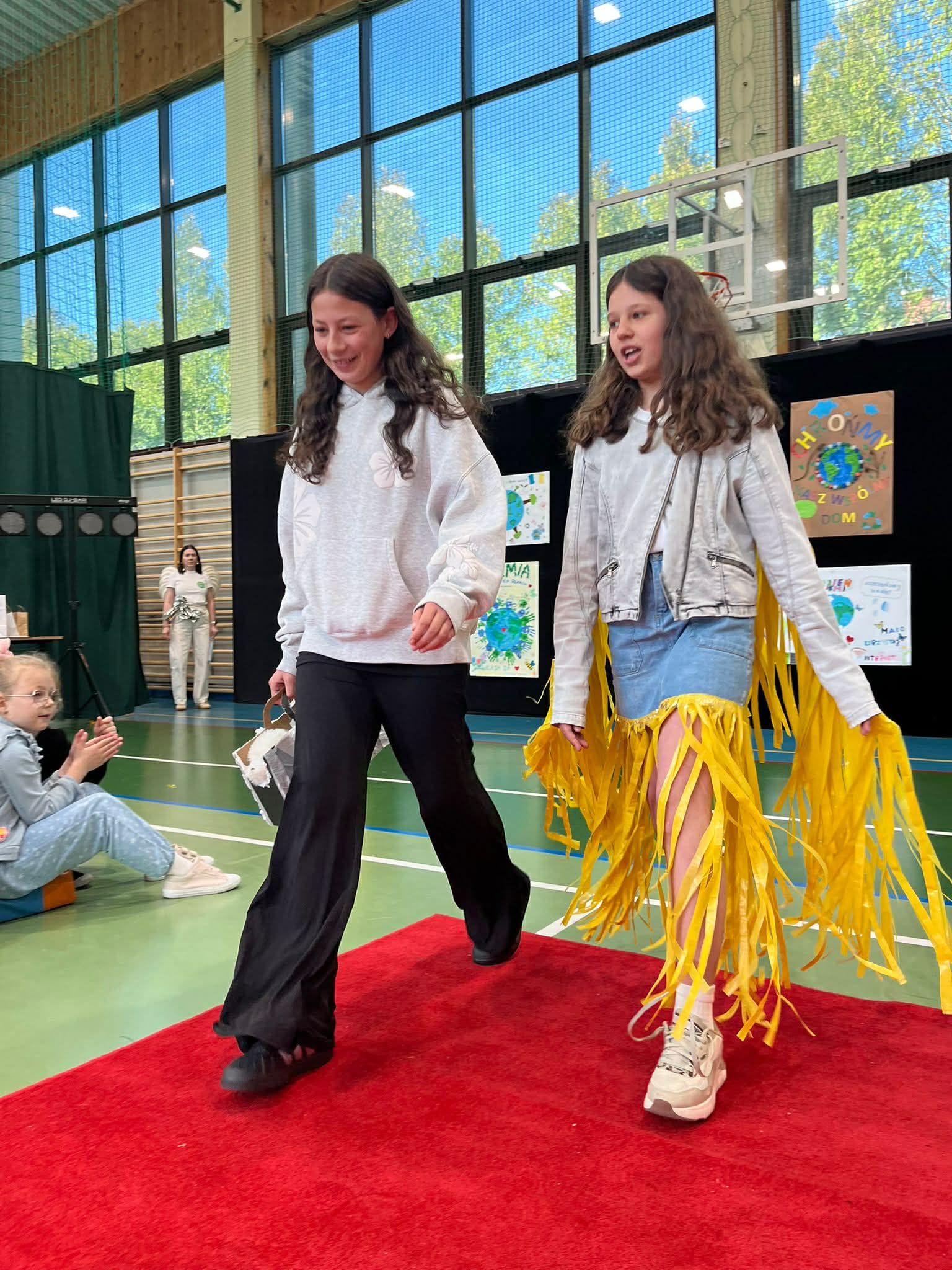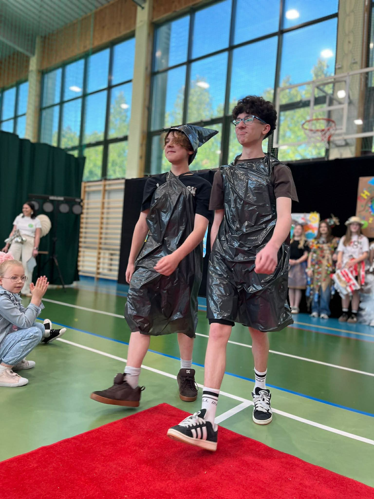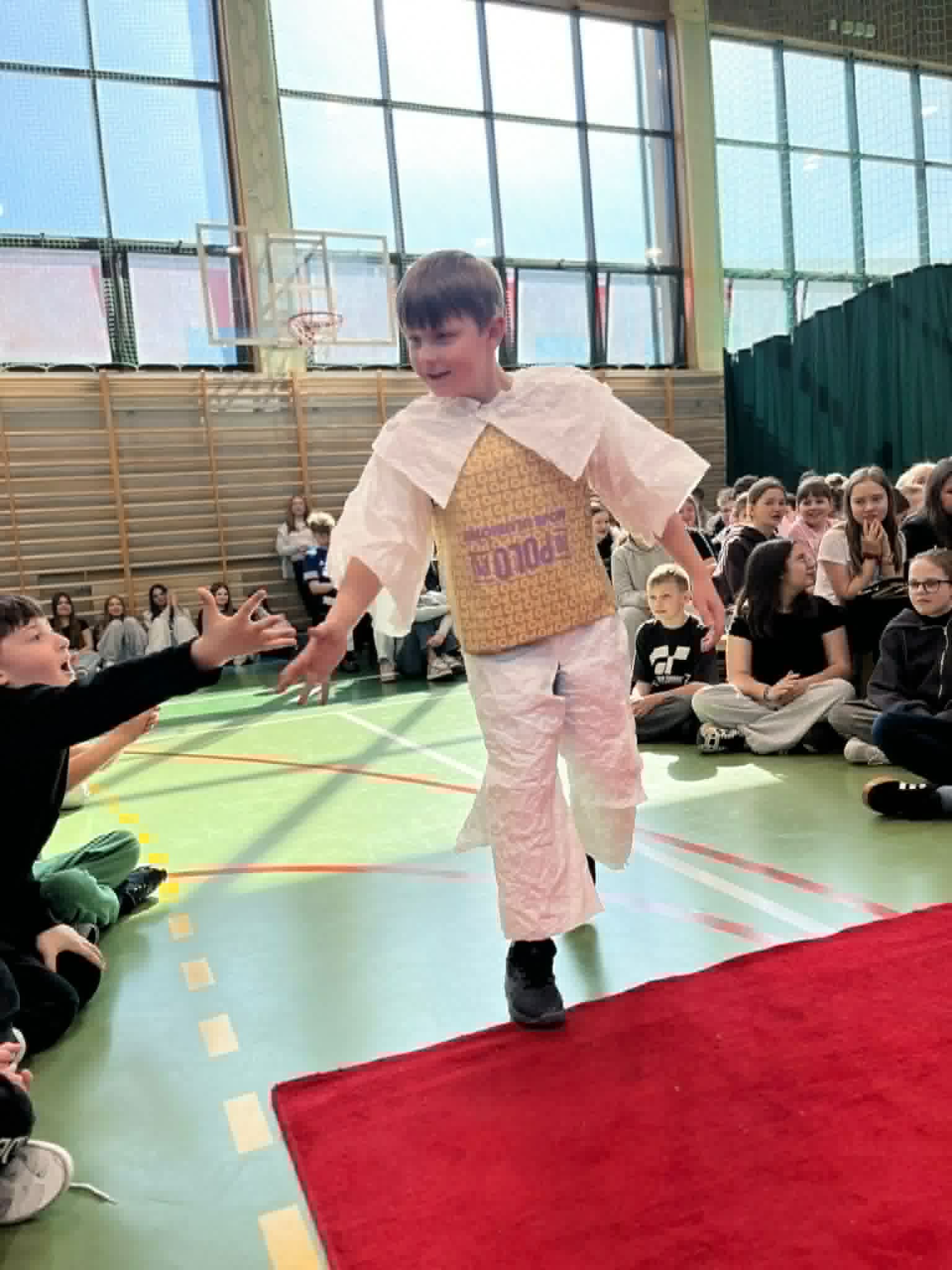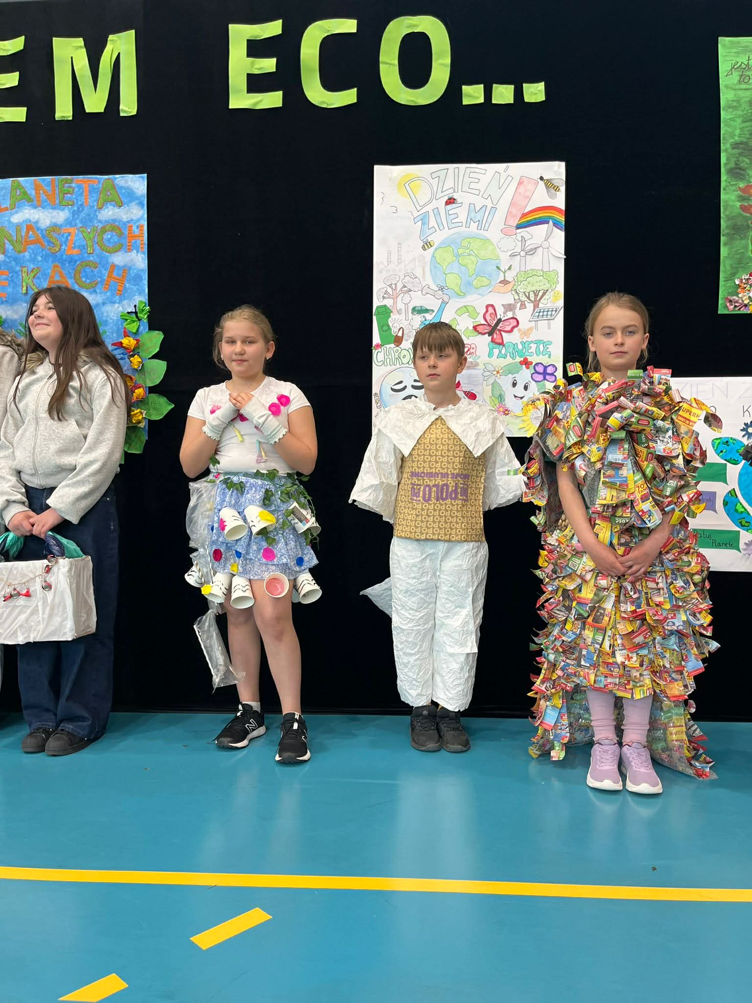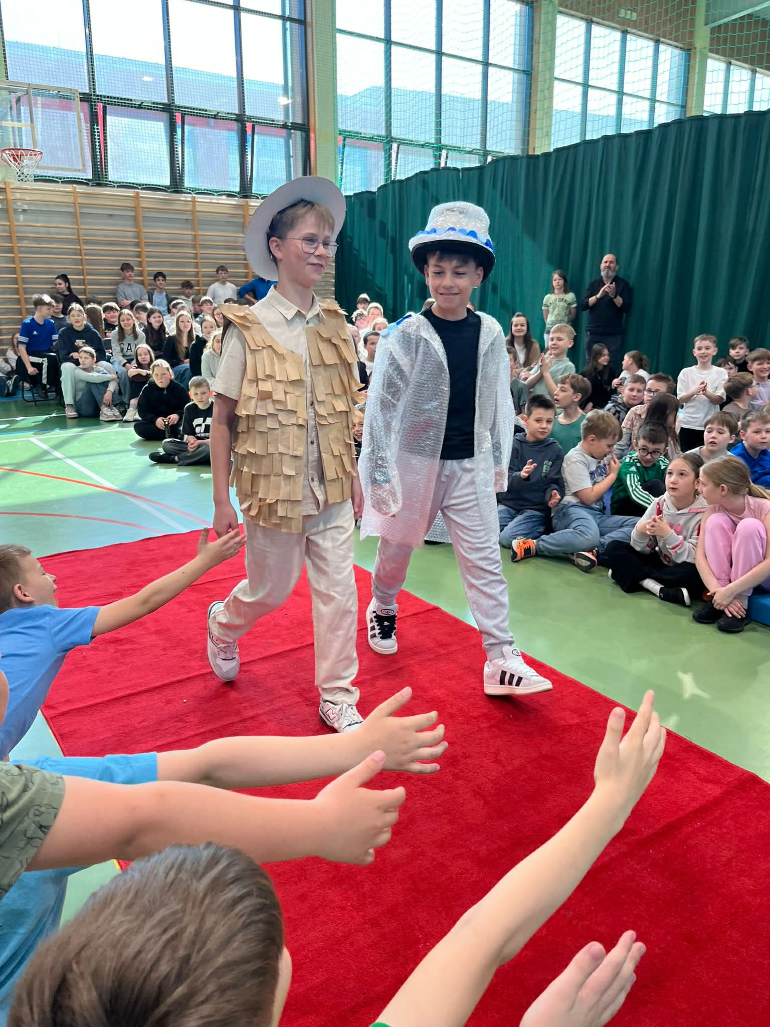 Jednym z głównych punktów programu był pokaz mody ekologicznej. Uczniowie z ogromnym zaangażowaniem przygotowali stroje wykonane z materiałów przeznaczonych do recyklingu. Kreatywność uczestników była imponująca, a sam pokaz cieszył się bardzo dużym zainteresowaniem. Wśród uczestników Jury wyłoniło zwycięzców w dwóch kategoriach wiekowych: