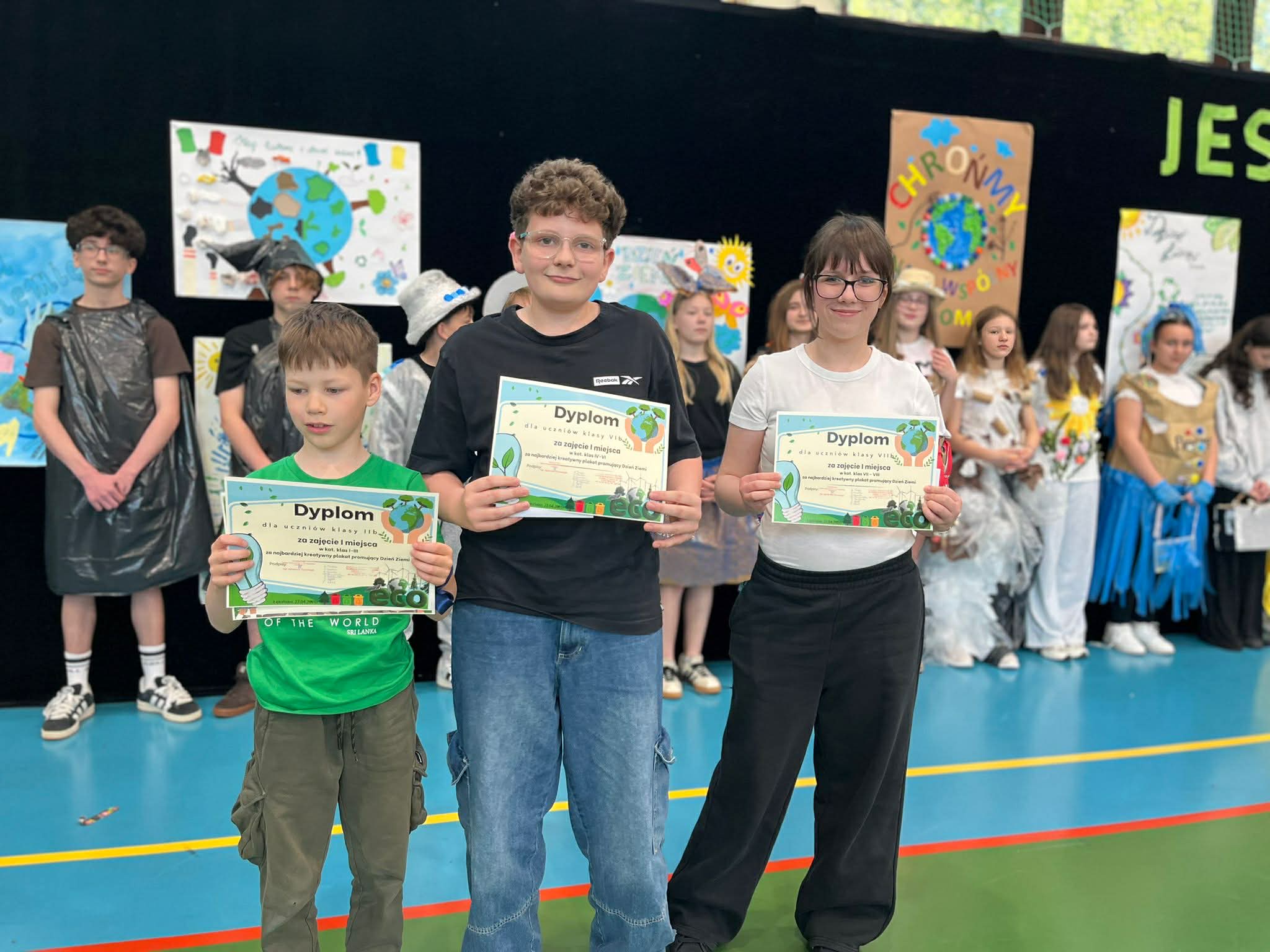 Dodatkowo cała społeczność szkolna, wraz z wychowawcami, włączyła się w przygotowanie plakatów oraz haseł promujących Dzień Ziemi, które podczas apelu tworzyły piękną dekorację. Powstałe prace były piękne, pomysłowe i pełne ekologicznych przesłań. Spośród nich wyłoniono zwycięzców w trzech kategoriach: klasy 1–3, klasy 4–6 oraz klasy 7–8. Zwycięskie klasy to: