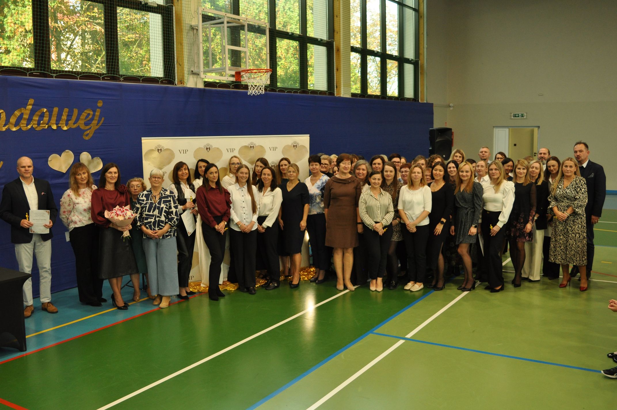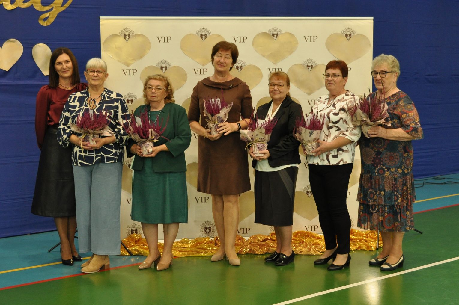 Szczególne chwile wzruszenia przyniosło uhonorowanie emerytowanych nauczycieli i pracowników, którzy przez lata tworzyli historię naszej szkoły. Otrzymali oni pamiątkowe upominki oraz serdeczne podziękowania za wieloletnią pracę i oddanie uczniom. Na zakończenie Samorząd Uczniowski złożył wszystkim raz jeszcze serdeczne życzenia. Uroczystość zwieńczyło wspólne, pamiątkowe zdjęcie wszystkich pracowników – złotych serc naszej szkoły.