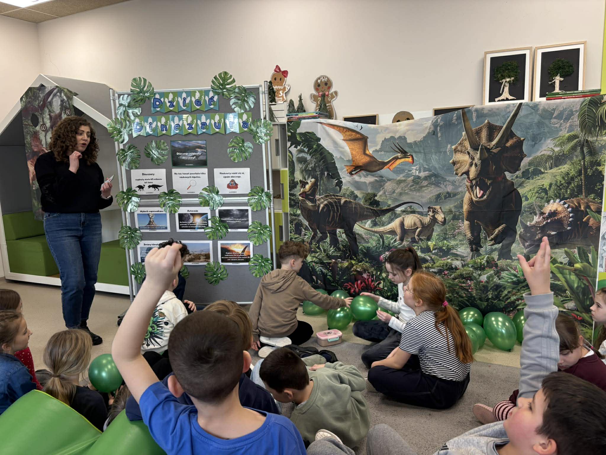 23 lutego uczniowie klas 1–3 świętowali w świetlicy Dzień Dinozaura. Dzieci uczestniczyły w krótkiej dyskusji o tym, dlaczego dinozaury wyginęły, a następnie wzięły udział w wesołej gimnastyce inspirowanej ruchami prehistorycznych gadów.