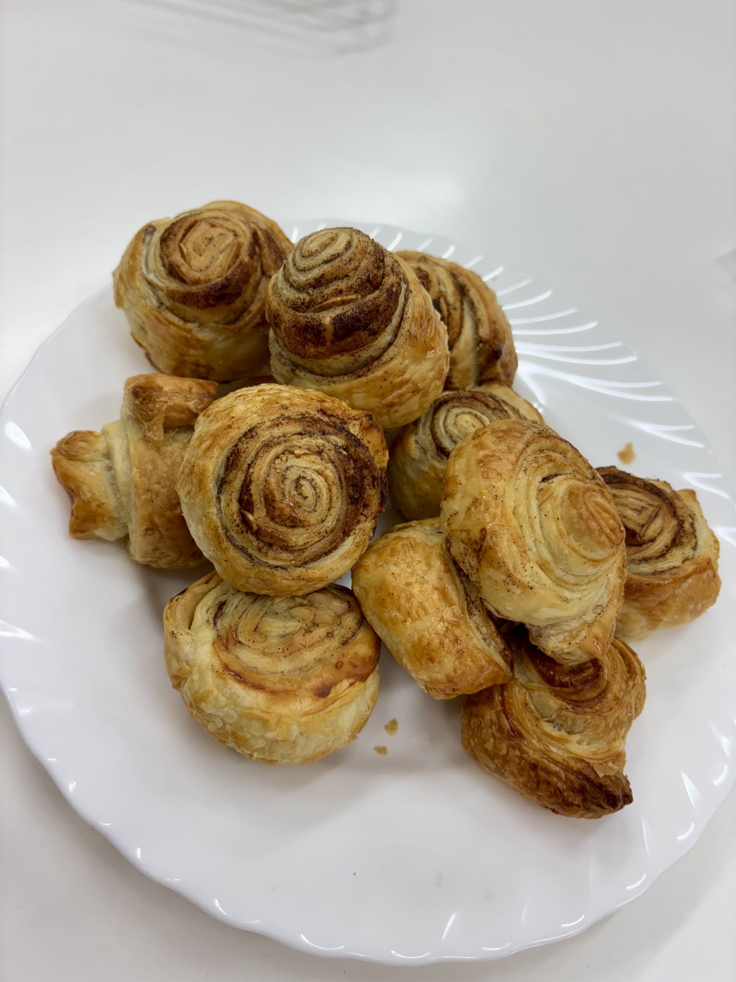 - aromatyczne cynamonki oraz ciasteczka z ciasta francuskiego z jabłkiem i dżemem, które zachwyciły wszystkich zapachem i smakiem.