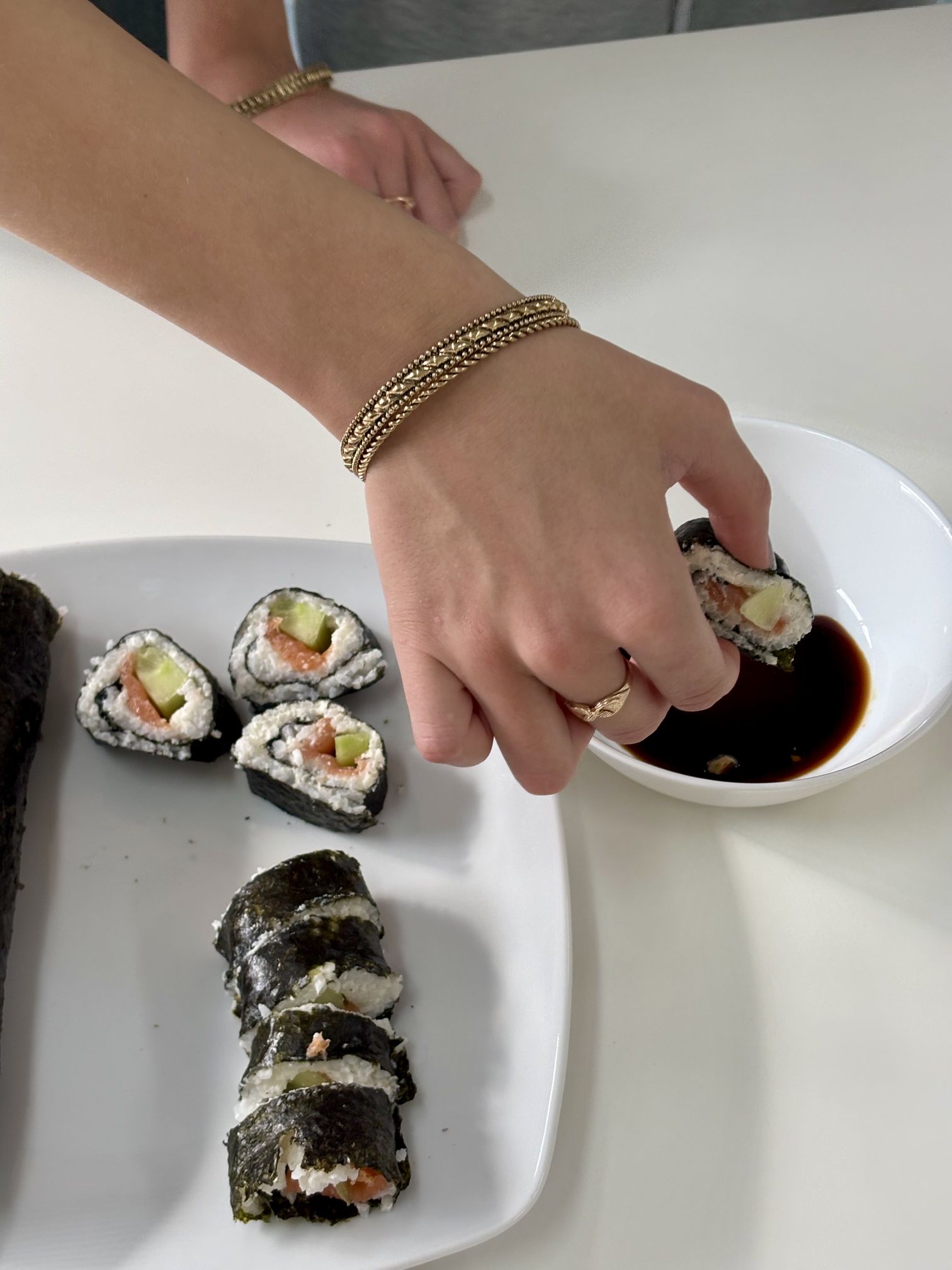 Jednym z ciekawszych kulinarnych wyzwań było również przygotowanie sushi w wersji szkolnej – zdrowej, lekkiej i pełnej smaku. Uczniowie poznali podstawowe zasady komponowania tego dania, dowiedzieli się, z jakich składników można stworzyć jego zdrowsze odpowiedniki i jak tradycyjne potrawy z innych kultur można dopasować do własnych potrzeb żywieniowych. Sushi okazało się nie tylko pyszną przekąską, ale też doskonałym pretekstem do rozmowy o różnorodności smaków i kultur kulinarnych świata.