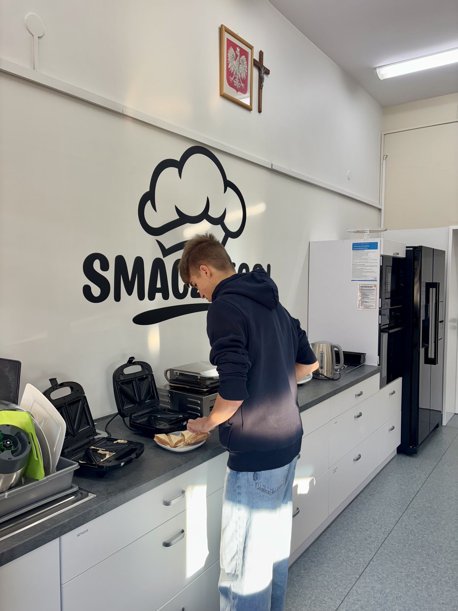 Podczas gotowania panowała fantastyczna atmosfera – pełna zaangażowania, kreatywności i współpracy. Uczniowie z entuzjazmem podejmowali kolejne kulinarne wyzwania, dzielili się pomysłami i pomagali sobie nawzajem. Widać było, że wspólne gotowanie to nie tylko nauka, ale też świetny sposób na integrację i rozwijanie pasji.