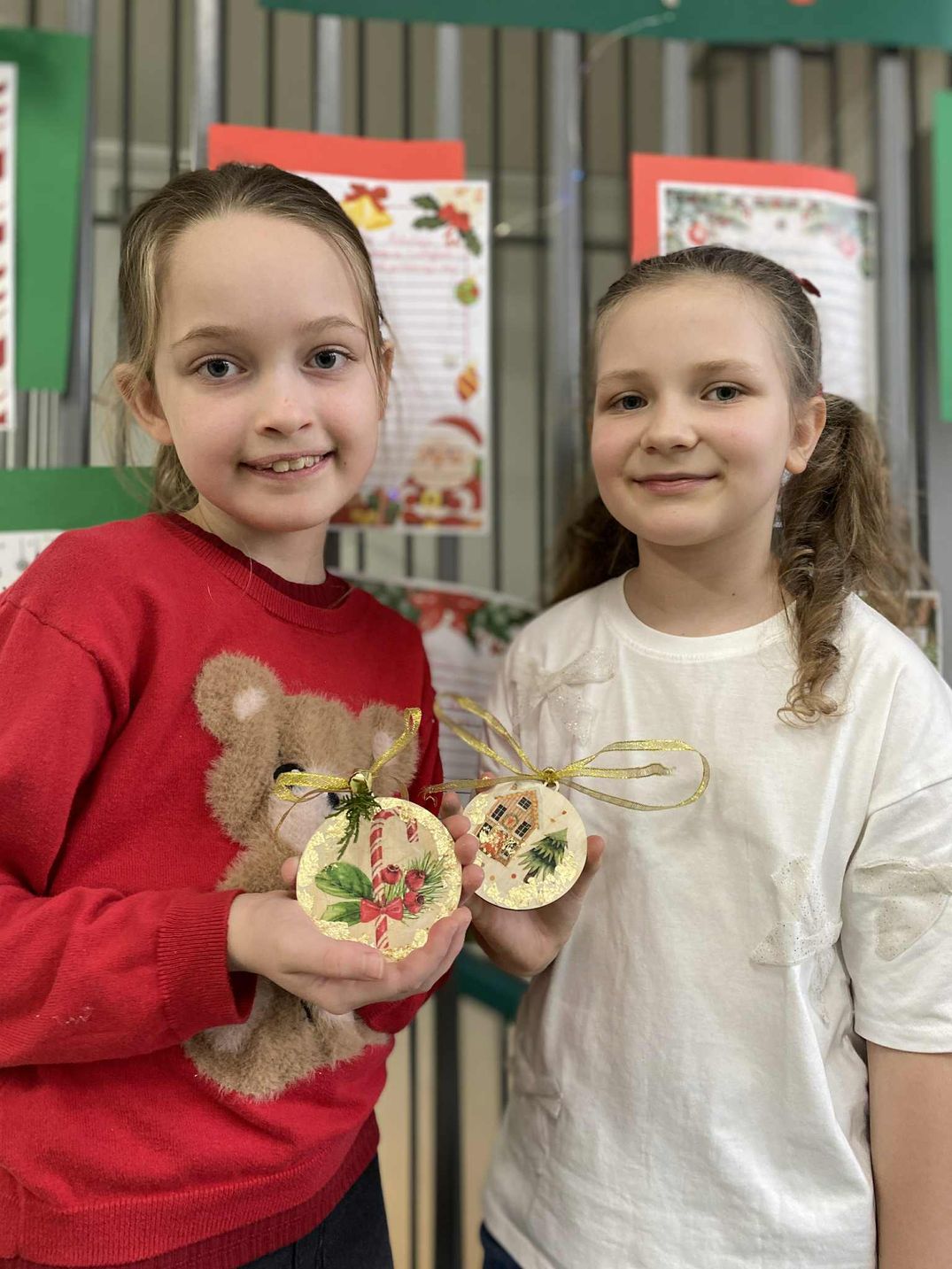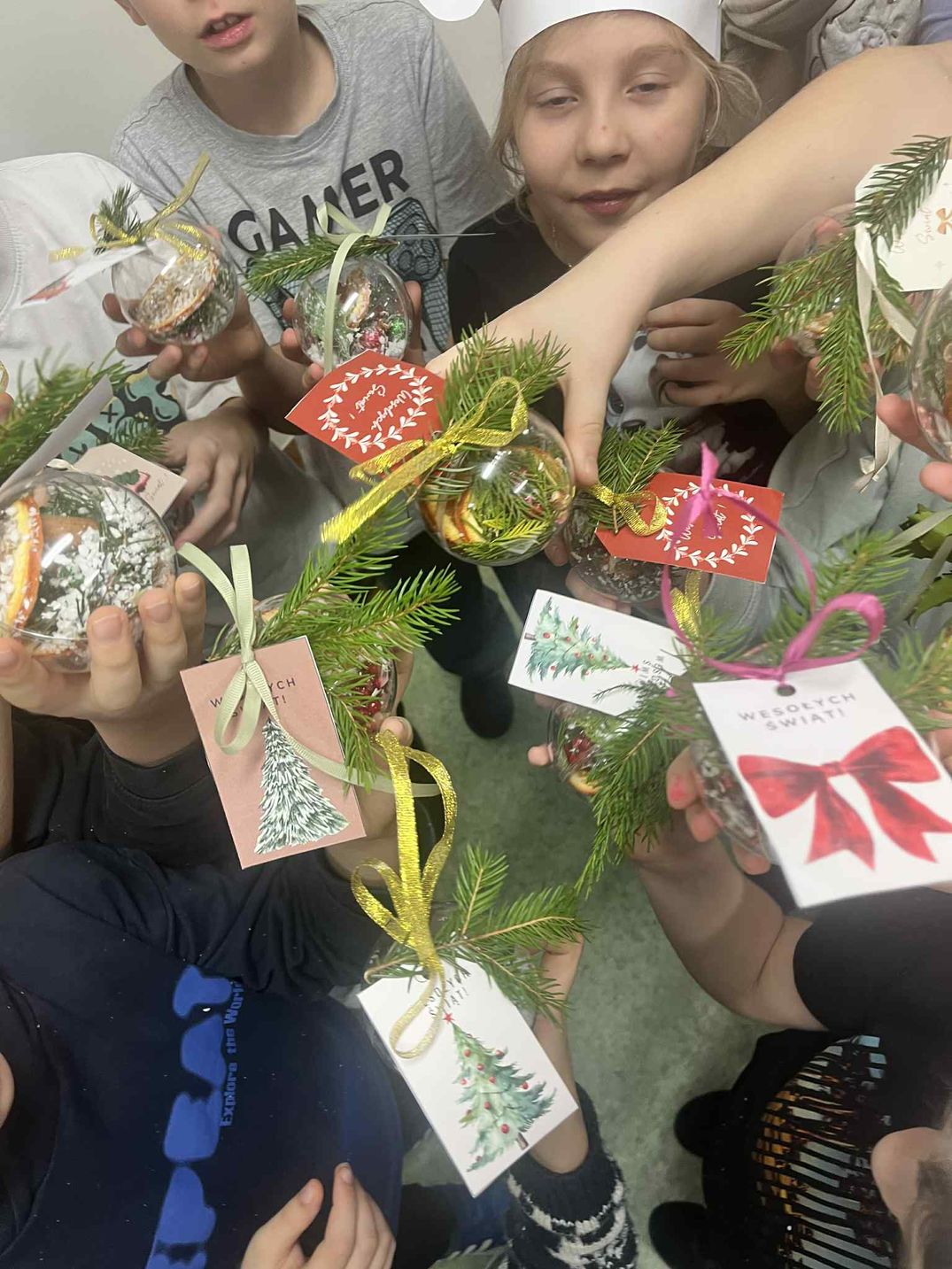 Klasy trzecie tworzyły akrylowe bombki w przezroczystych kulach, ozdabiając je sztucznym śniegiem, brokatem, igliwiem i gwiazdkami. Dodatkowo klasa 3b wraz ze swoimi nauczycielami M. Sowa i E. Gaik zorganizowali Bożonarodzeniowe warsztaty, podczas których uczniowie wraz z rodzicami tworzyli piękne, zielone wieńce świąteczne.