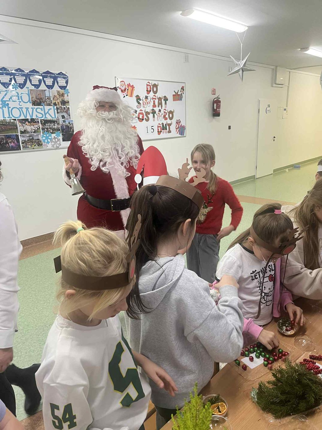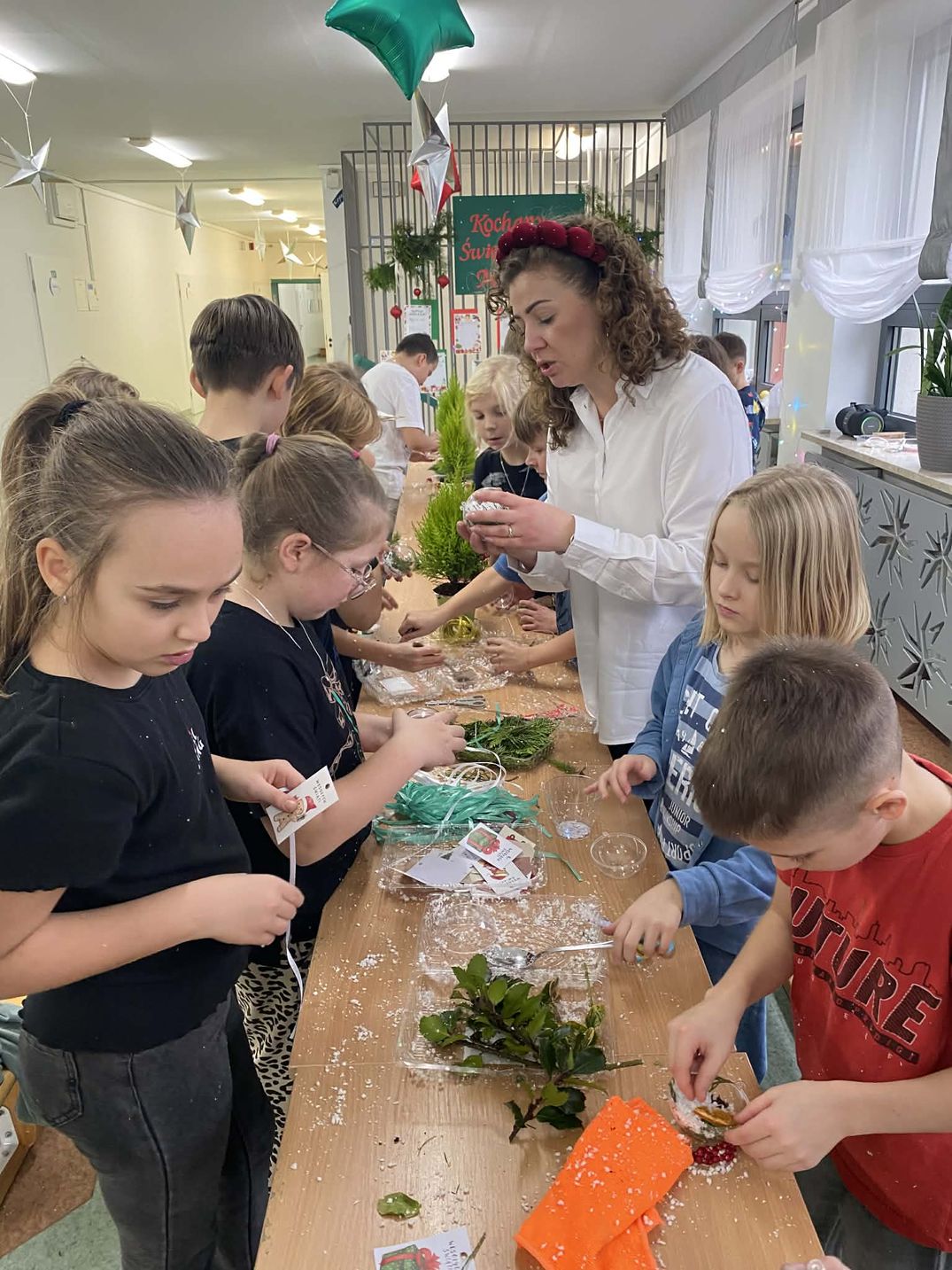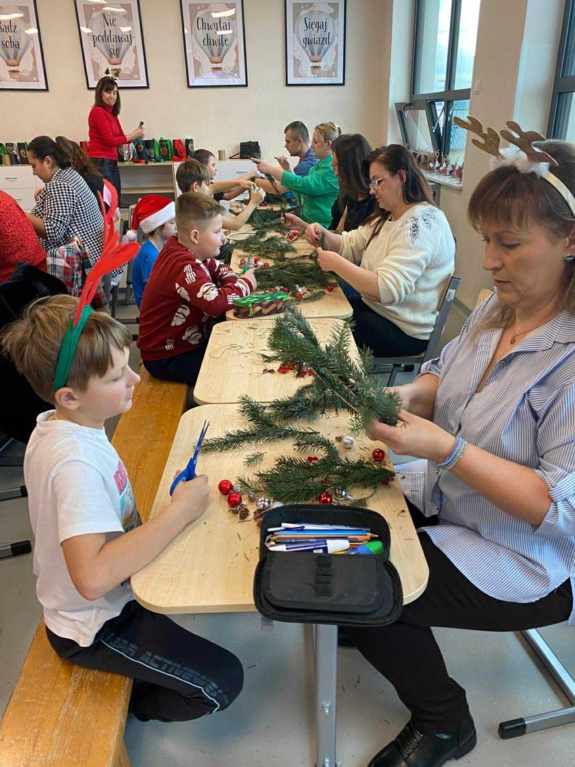 Udział w warsztatach pozwolił dzieciom rozwijać kreatywność, zdolności manualne, koncentrację i wyobraźnię. Zajęcia sprzyjały również współpracy i integracji uczniów i rodziców. Efektem warsztatów były wspaniałe, własnoręcznie wykonane ozdoby i wianki świąteczne. Całości atmosfery dopełniała Mikołajkowa dekoracja i radosna, świąteczna muzyka w tle.