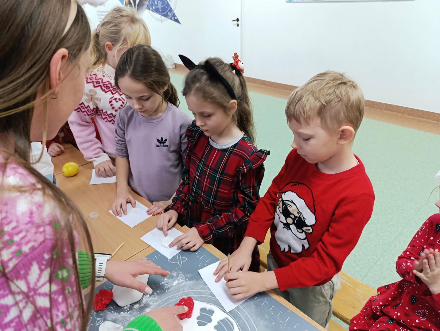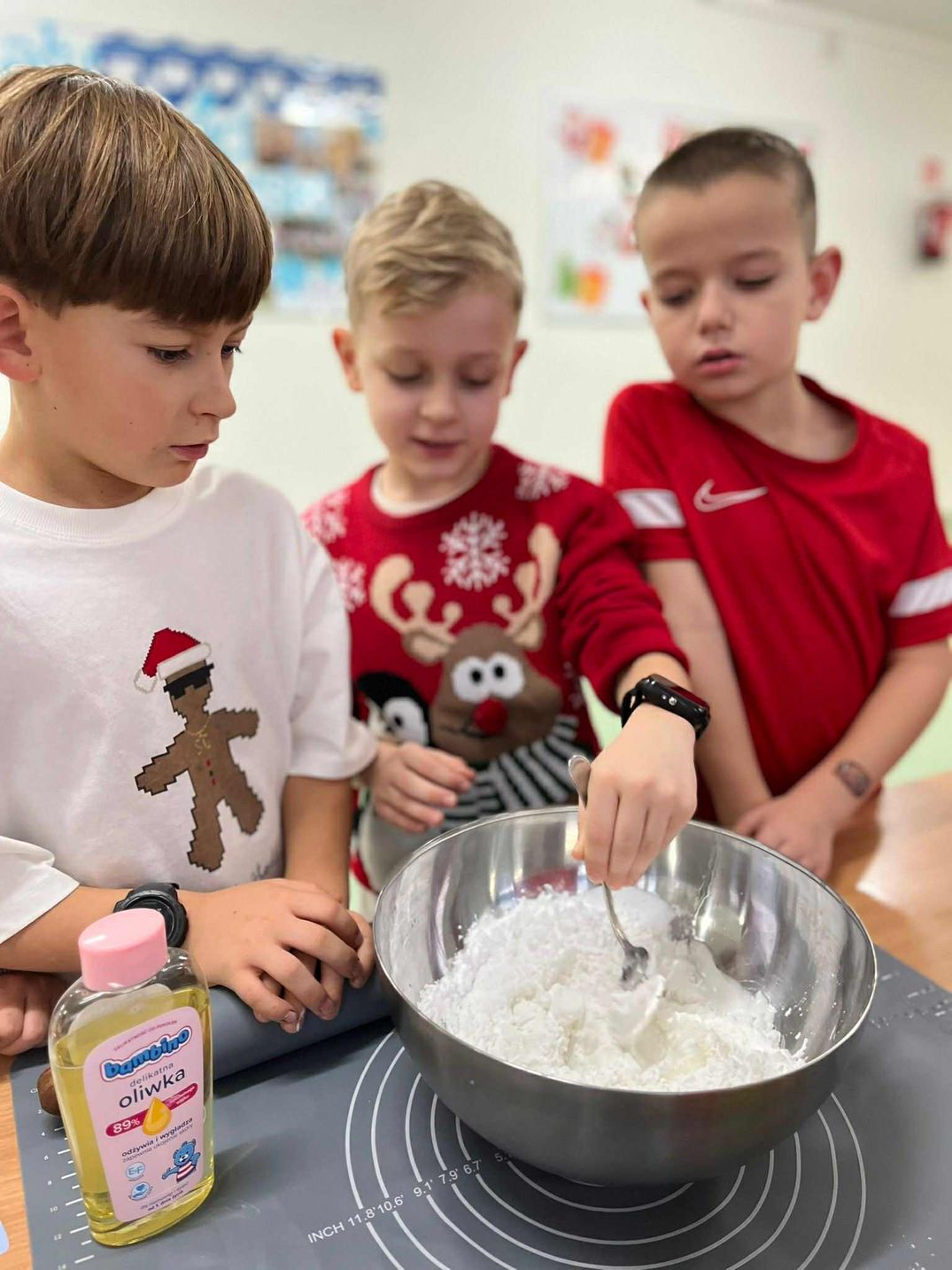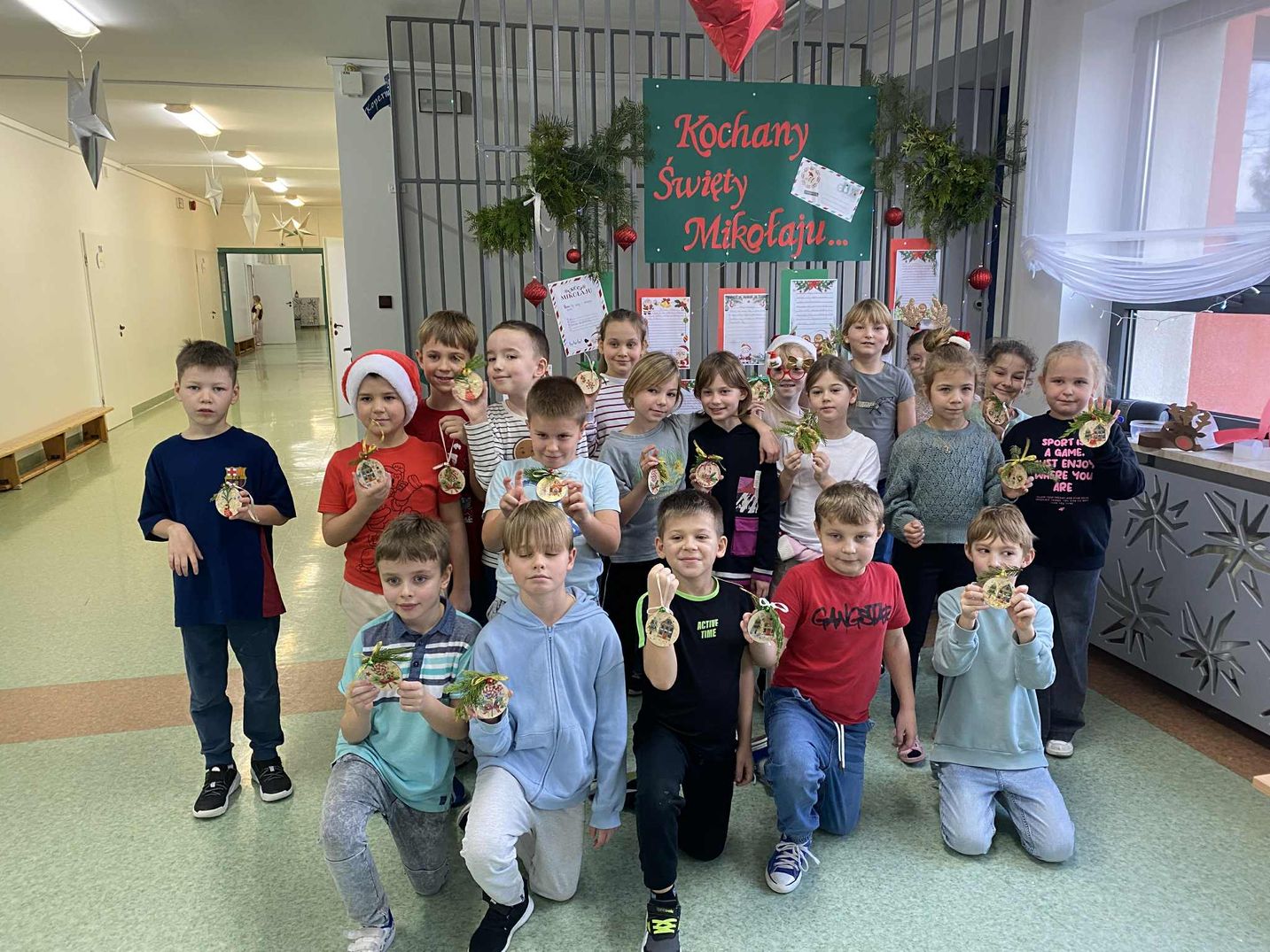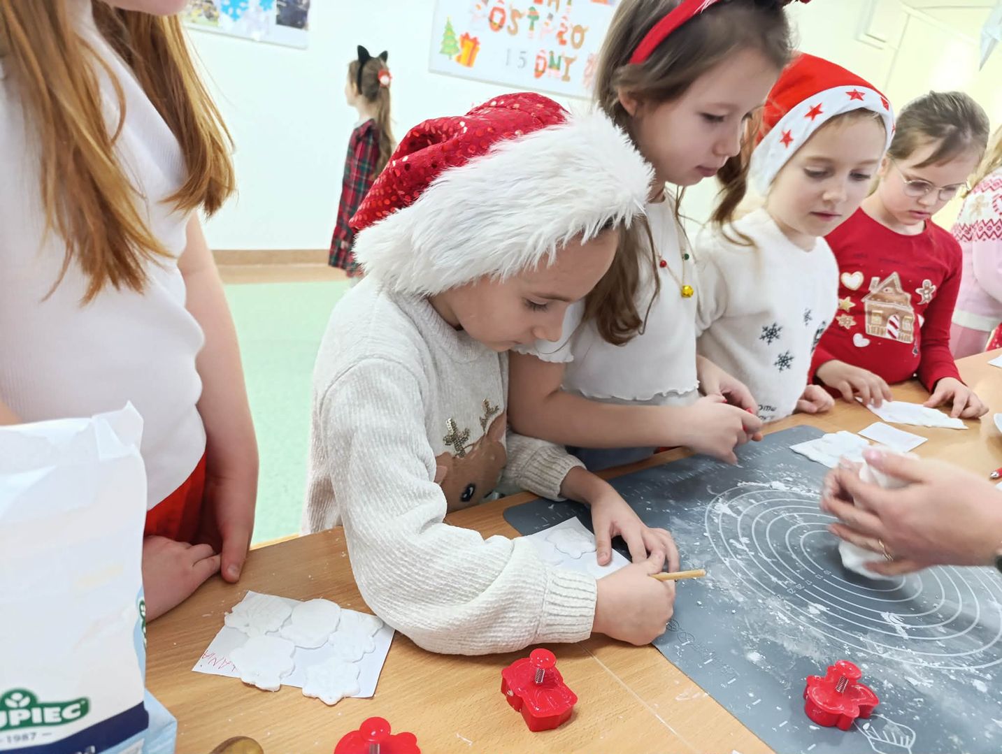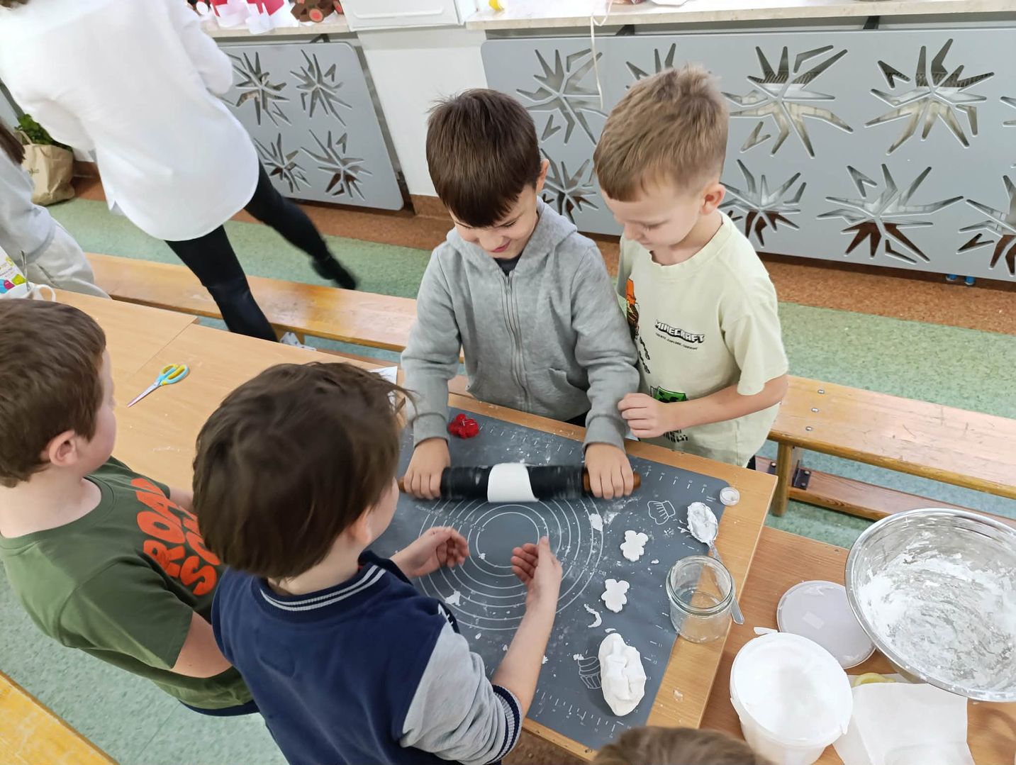 W tym tygodniu nauczyciele świetlicy zorganizowali dla uczniów klas 1-3 wyjątkowe Mikołajki. Wydarzenie, to miało charakter warsztatowy angażując wszystkie klasy 1-3 w twórcze przygotowania ozdób bożonarodzeniowych. Klasy pierwsze z wielkim zapałem przygotowywały porcelanowe pierniczki, najpierw zapoznali się z przepisem na taką masę i zgodnie wykonywali zadanie krok po kroku, tworząc przy tym wspaniałe białe, ceramiczne i brokatowe ozdoby, które na pewno zawisną na tegorocznej choince. Klasy drugie skupiły się na technice decoupage'u. Uczniowie wycinali świąteczne motywy z serwetek i pięknie zdobili swoje drewniane bombki rozwijając przy tym wrażliwość artystyczną i zdolności manualne.