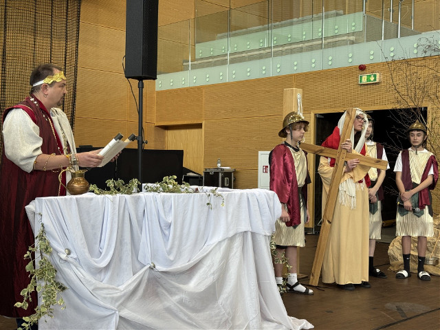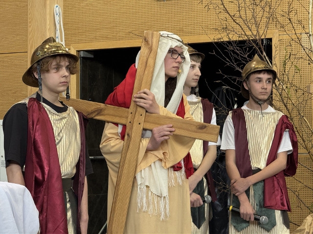 Jednym z najważniejszych punktów programu było poruszające Misterium Męki Pańskiej pt. „Byłem, jestem będę…”. Podczas przedstawienia mogliśmy przeżyć najważniejsze wydarzenia Wielkiego Tygodnia: wjazd Jezusa do Jerozolimy, Ostatnią Wieczerzę, zdradę Judasza, sąd przed Piłatem, Drogę Krzyżową oraz śmierć Jezusa na krzyżu. W role Jezusa, Piłata, Apostołów, Szymona z Cyreny, Weroniki, Maryi, arcykapłanów, żołnierzy i rozkrzyczanego tłumu wcielili się uczniowie, nauczyciele oraz absolwenci naszej szkoły. Tegoroczne przedstawienie pasyjne po raz pierwszy zostało zaprezentowane przed tak liczną i wspaniałą publicznością i miało skłonić widzów do refleksji nad pytaniem: „Kim we współczesnym świecie jest dla mnie Jezus”. Spektakl spotkał się z bardzo dużym uznaniem uczestników wydarzenia oraz lokalnej społeczności.