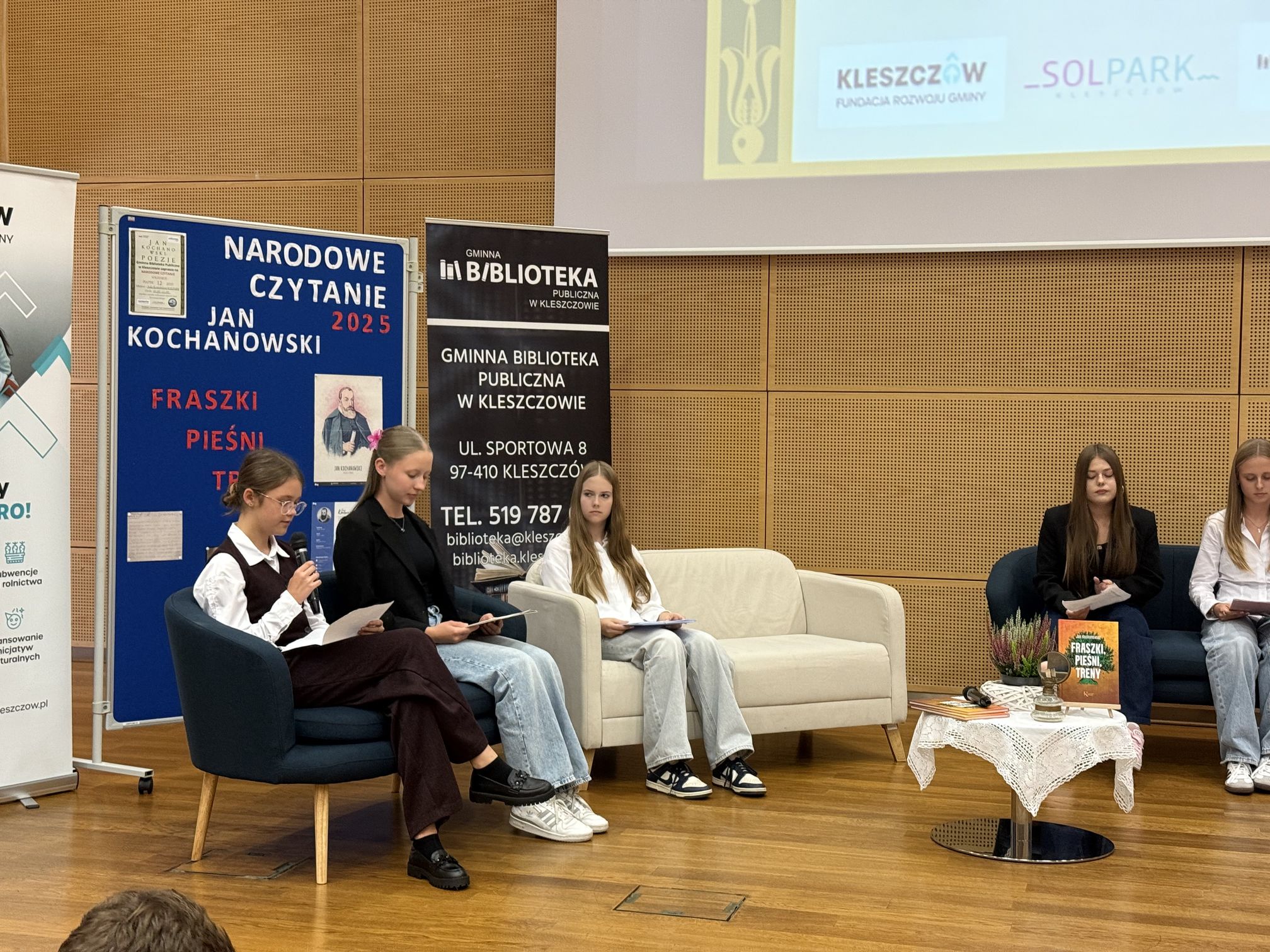 Miłośnicy literatury, przedstawiciele lokalnych władz, uczniowie, nauczyciele oraz mieszkańcy gminy zgromadzili się w auli Solpark Kleszczów o godzinie 10:00. Uczestników powitały dyrektor biblioteki, p. Ilona Rogaczewska oraz dyrektor ZSP w Kleszczowie, p. Edyta Wiernicka, które podkreśliły znaczenie Jana Kochanowskiego w literaturze polskiej oraz rolę Narodowego Czytania w promocji kultury literackiej.