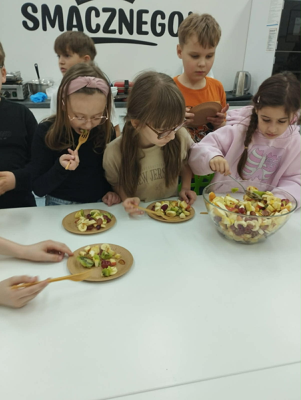 Klasa 2a wraz z panią W. Pacholik podczas zajęć świetlicowych przygotowywała kolorową i zdrową sałatkę owocową, ucząc się przy tym zasad zdrowego odżywiania oraz współpracy w grupie.