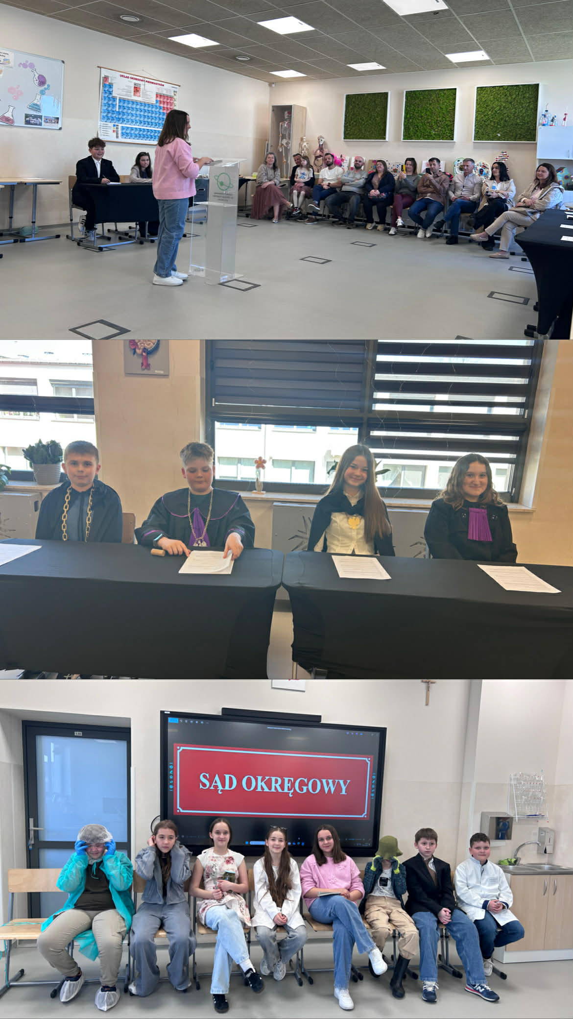 W klasie 5b na lekcji biologii odbyła się lekcja otwarta dla rodziców. Uczniowie przygotowali przedstawienie pt. „Sąd nad bakteriami”, w którym bronili bakterii pożytecznych. Podczas podsumowania zajęć utrwalili wiedzę na temat dobrych i złych bakterii, profilaktyki zdrowotnej oraz dróg przenoszenia drobnoustrojów. Na zakończenie lekcji uczniowie kosztowali przekąsek wspierających dobre bakterie jelitowe – owoce bogate w błonnik oraz produkty mleczne zawierające probiotyki.