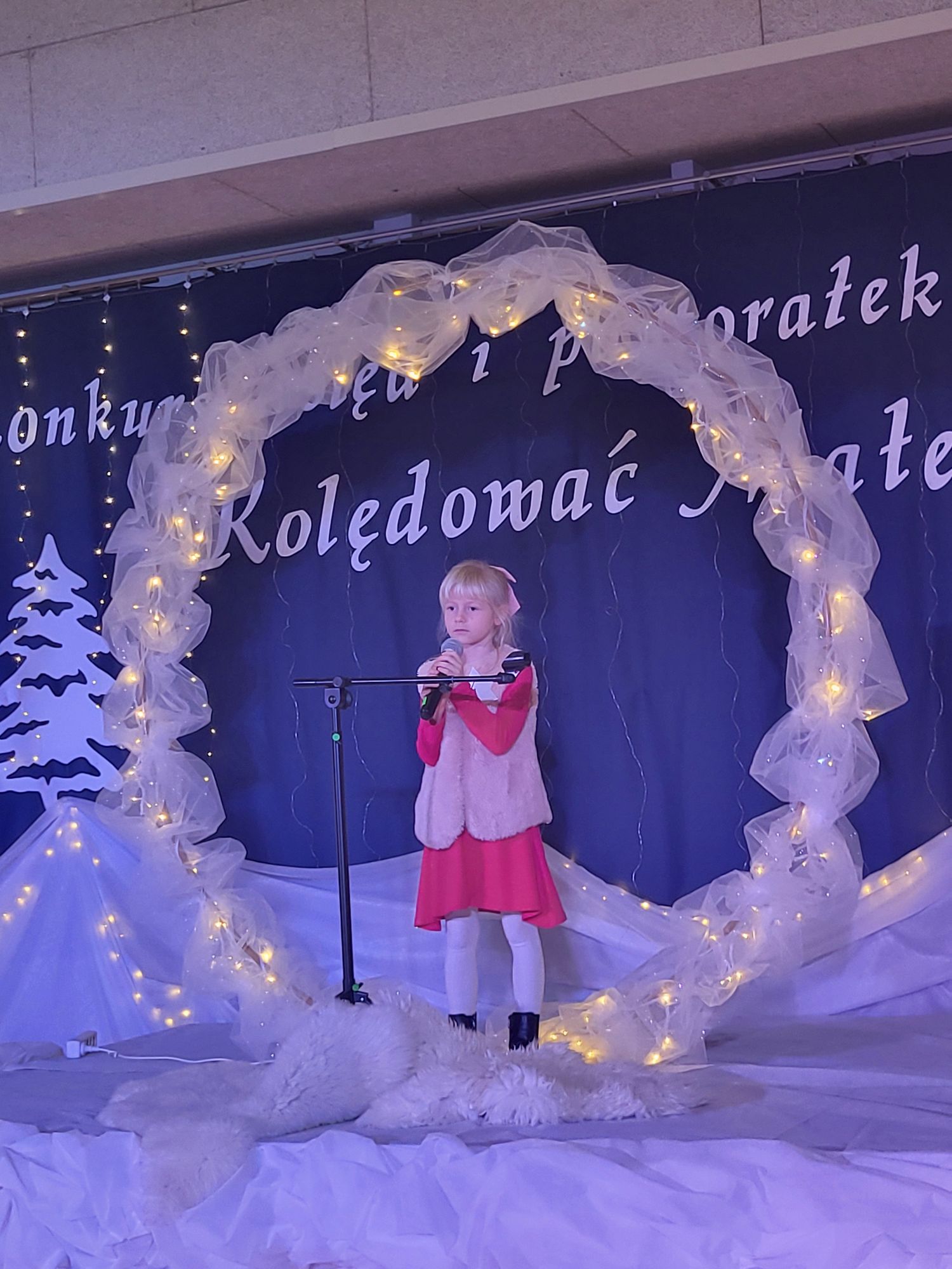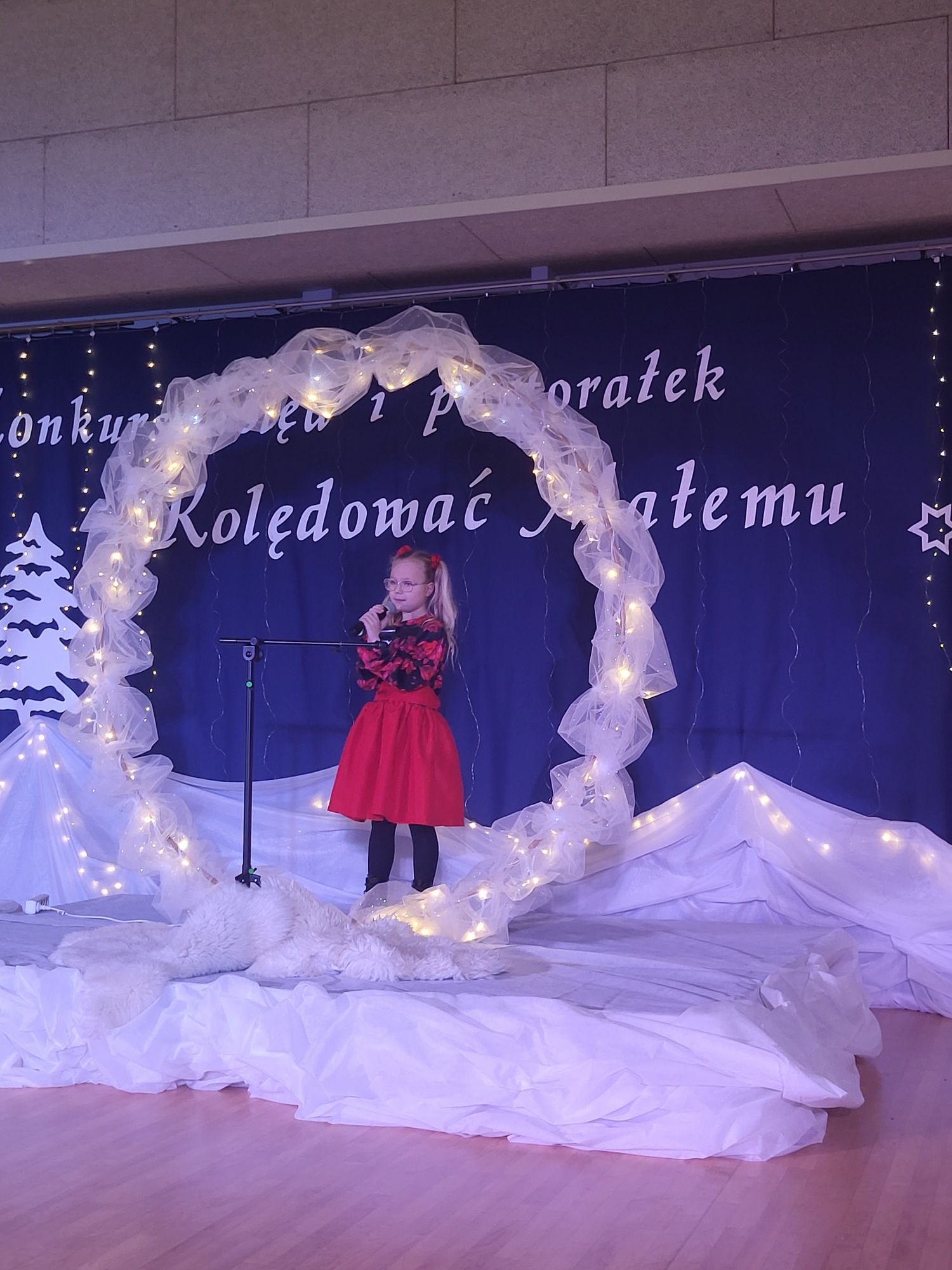 Naszą szkołę reprezentowały cztery dziewczynki z klas pierwszych. Uczennica klasy 1b Julia Kępińska-Siwczyk wyśpiewała I miejsce z piosenką „Pastuszek bosy”.