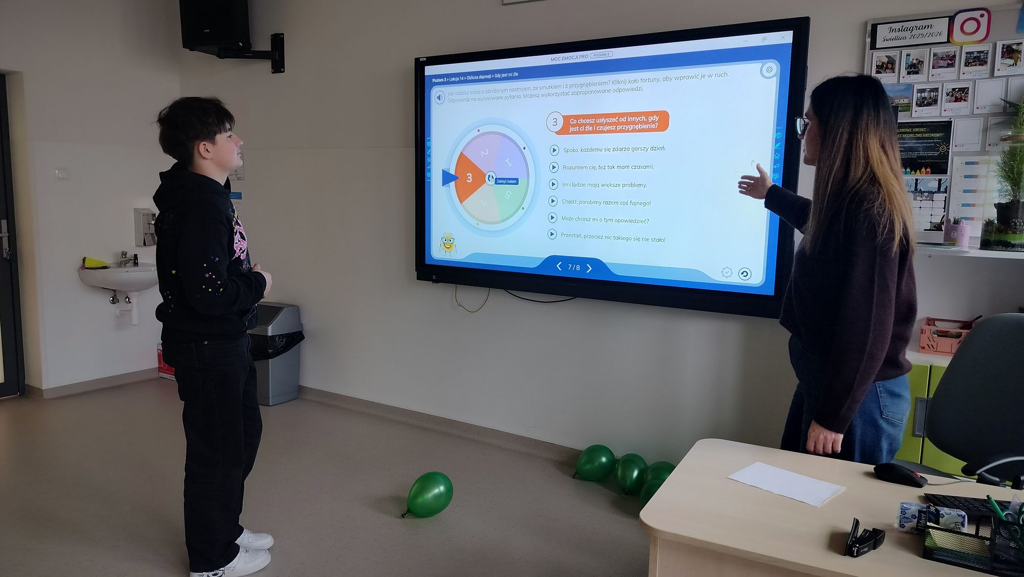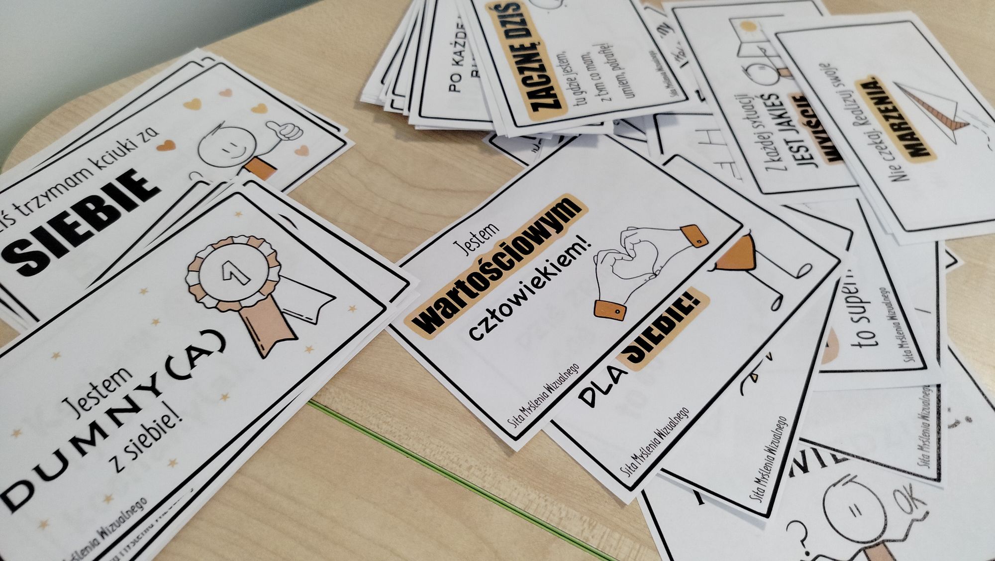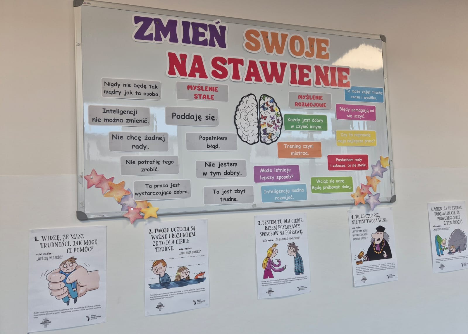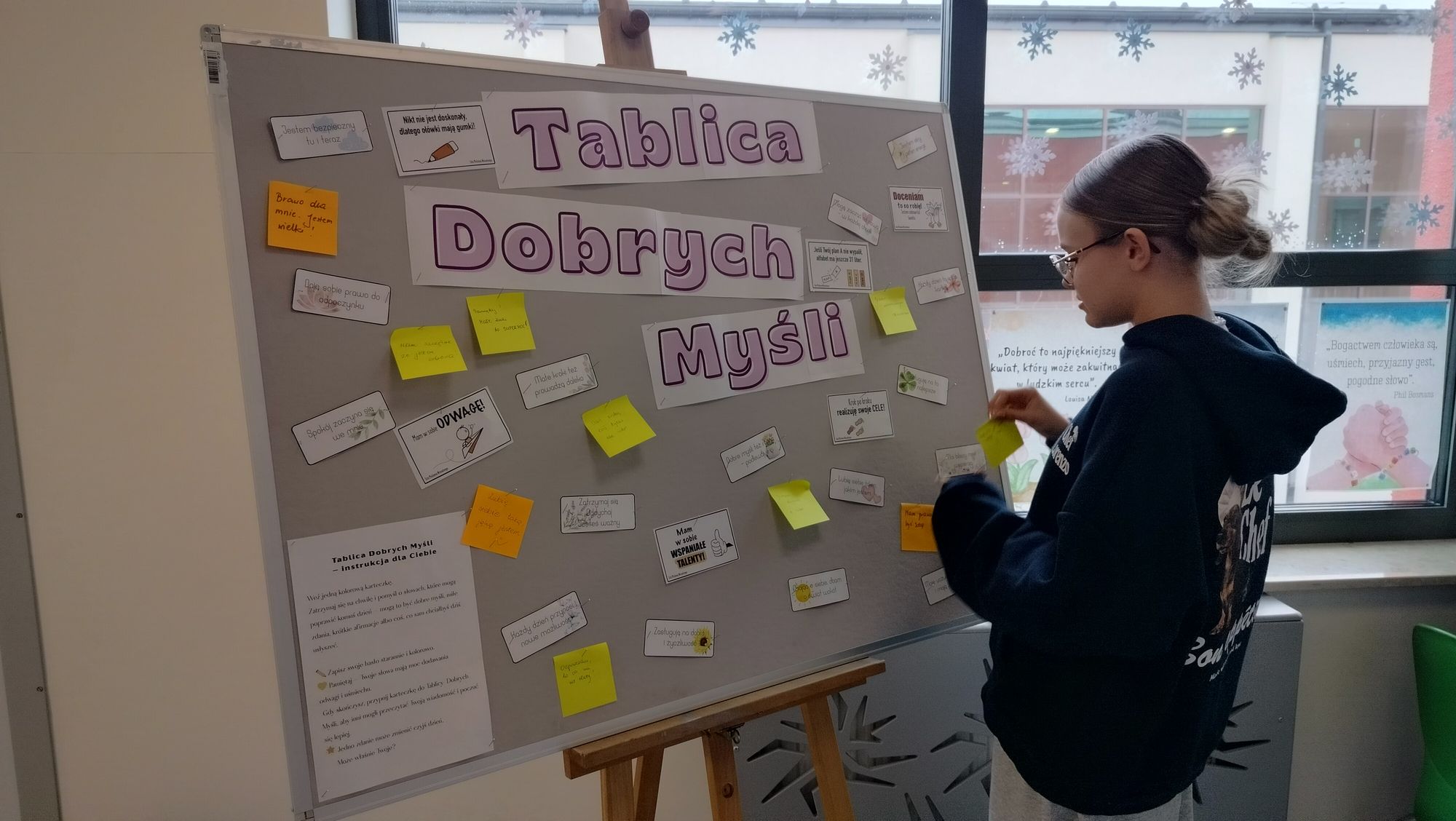 „Kącik dobrych myśli i chwili dla siebie” przypominał hasłem „Zatrzymaj się na moment – Twoje emocje są ważne”, że każdy ma prawo do odpoczynku i refleksji. Na uczniów czekała tablica dobrych myśli, inspirujące afirmacje oraz sensoryczne gniotki i piłeczki pomagające rozładować napięcie. To miejsce sprzyjało poprawie nastroju, regulacji emocji oraz budowaniu pozytywnego nastawienia do siebie i innych.