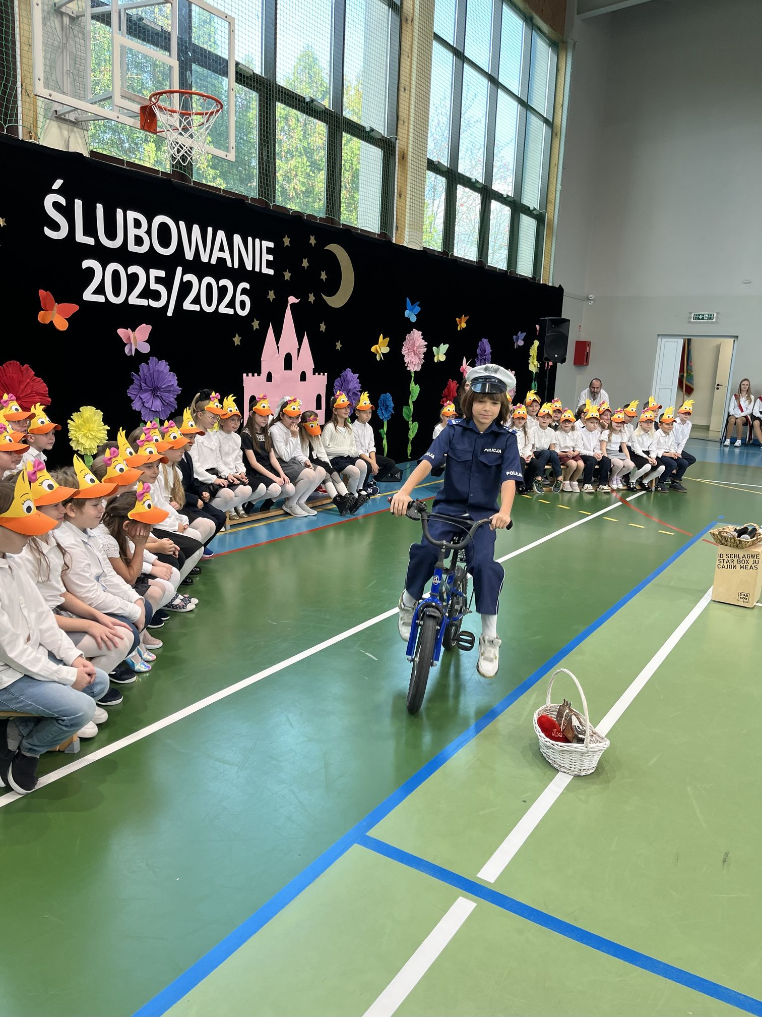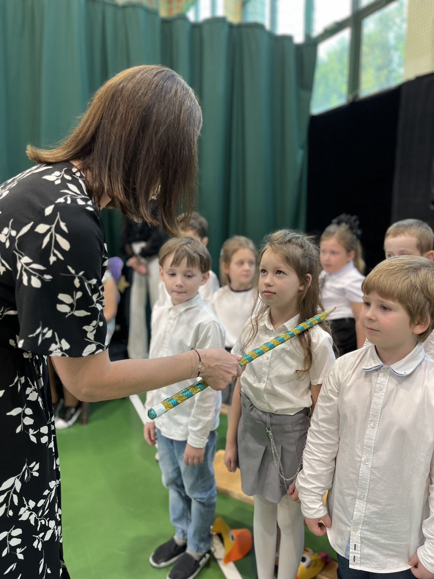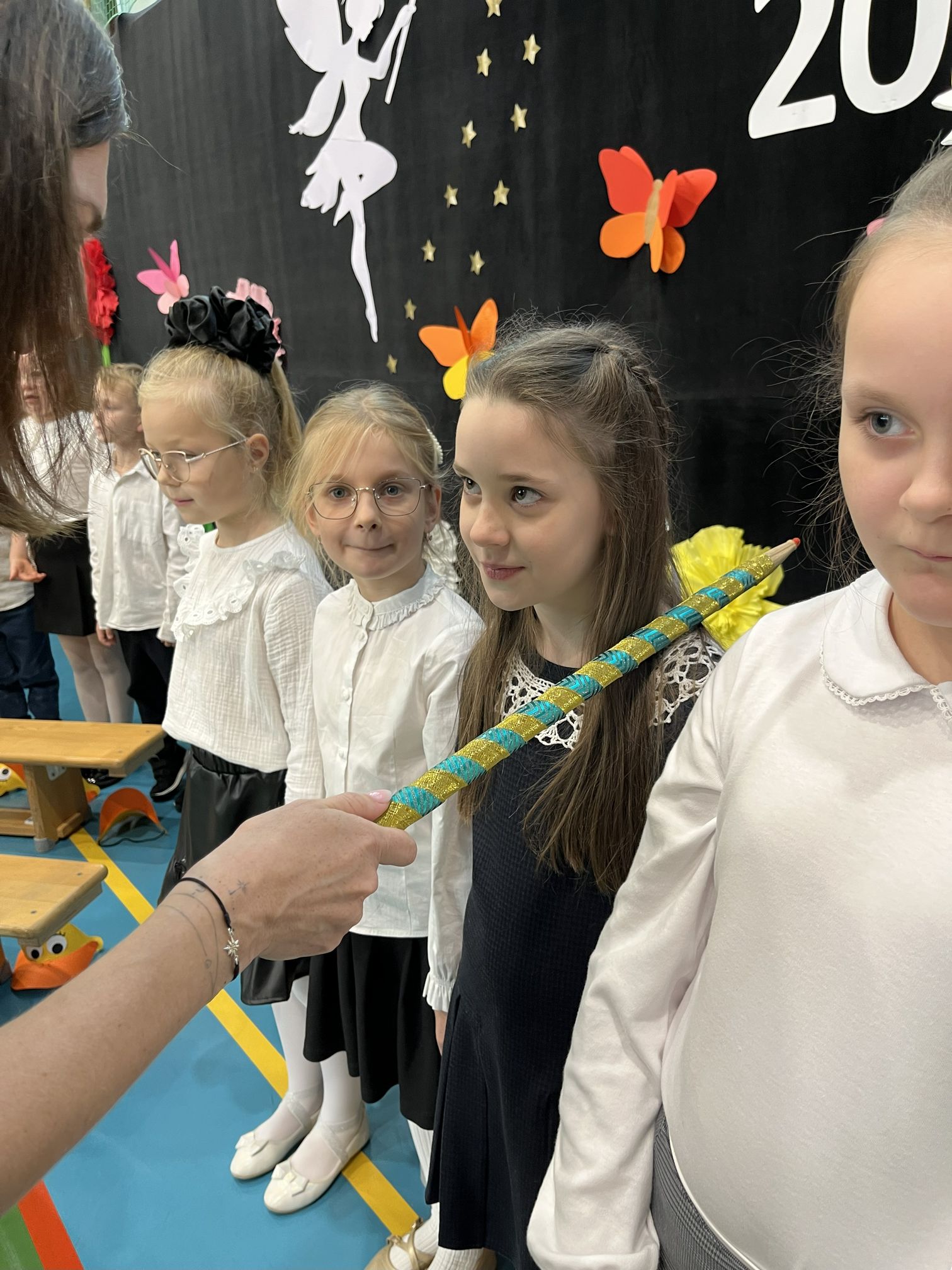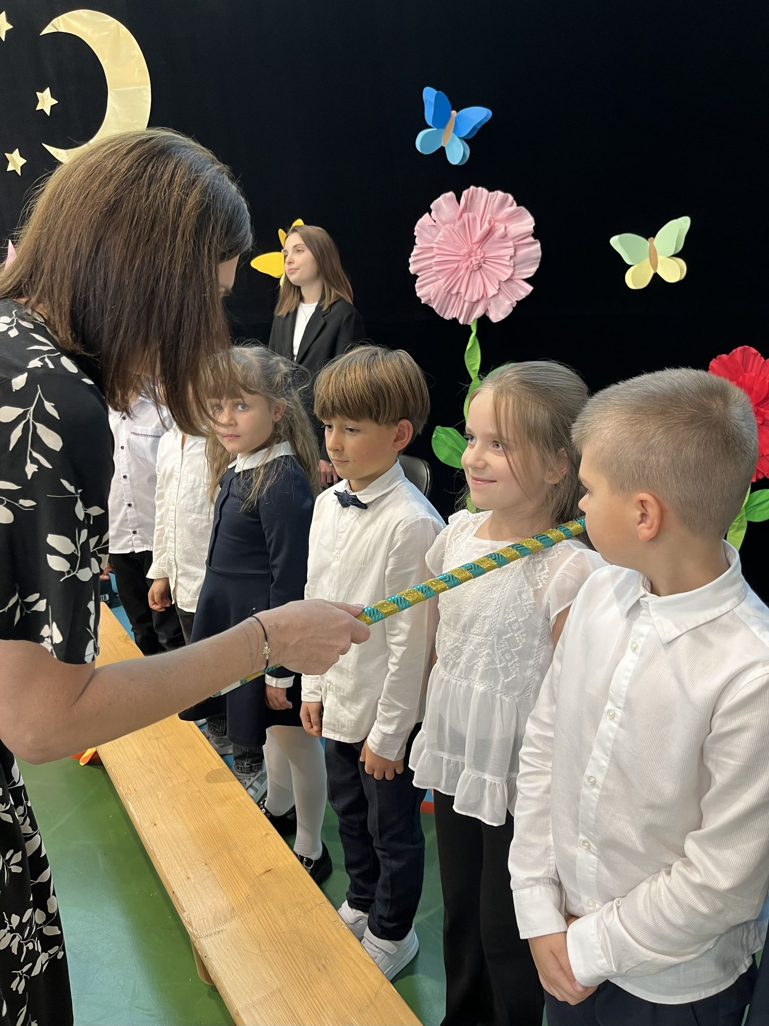 Najważniejszym momentem uroczystości było ślubowanie oraz akt pasowania na ucznia, którego dokonała Pani Dyrektor. Każde dziecko otrzymało pamiątkowy akt ślubowania, a na zakończenie także kolorowy balon wypełniony słodkościami oraz klasowe upominki w postaci zabawek.