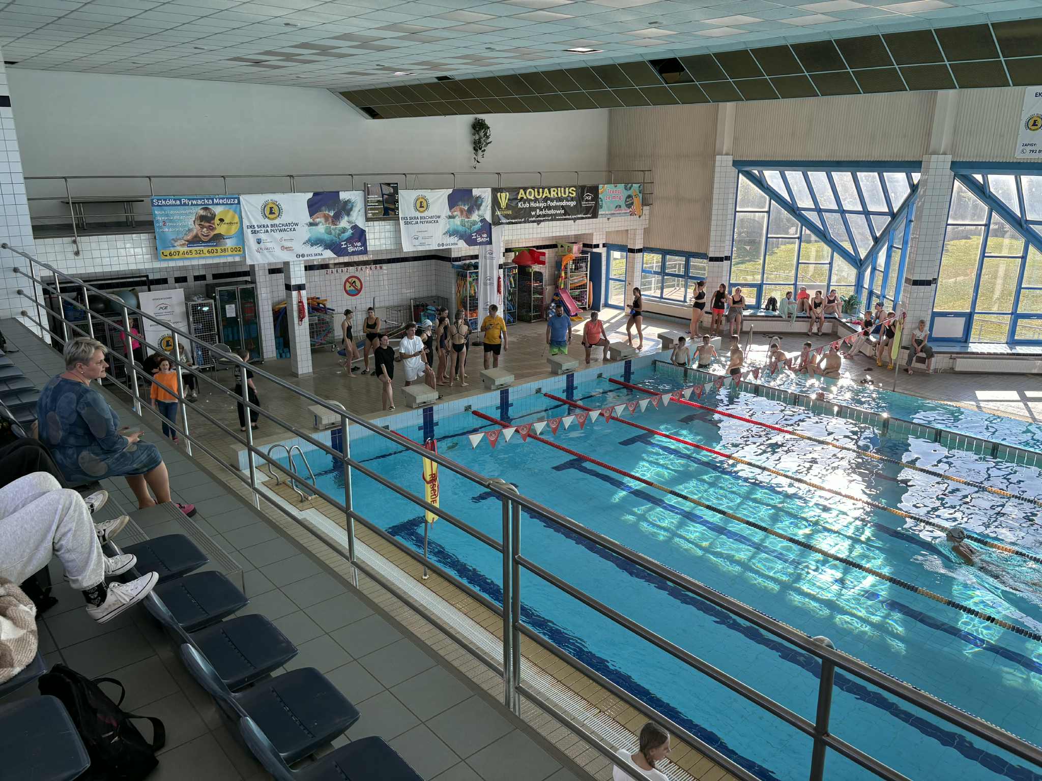 W dniu 20 października 2025 roku drużyna pływaków z naszej szkoły wzięła udział w powiatowych zawodach sportowych w pływaniu w ramach Igrzysk Dzieci i Igrzysk Młodzieży Szkolnej w Bełchatowie. Uczniowie startowali w 3 kategoriach: dziewczynki i chłopcy z klas 4-6 oraz dziewczynki z klas 7-8. Zawody rozgrywane były w formie sztafet 6 x 25 metrów dla dzieci młodszych i 6 x 50 metrów dla młodzieży szkolnej oraz startów indywidualnych różnymi stylami pływackimi. Nasi zawodnicy spisali się doskonale. Chłopcy i starsze dziewczynki zajęli 3 miejsca w swojej kategorii, natomiast drużyna młodszych dziewczynek uplasowała się na pierwszym miejscu i tym samym awansowała do półfinałów wojewódzkich, które odbędą się 24 października w Radomsku.