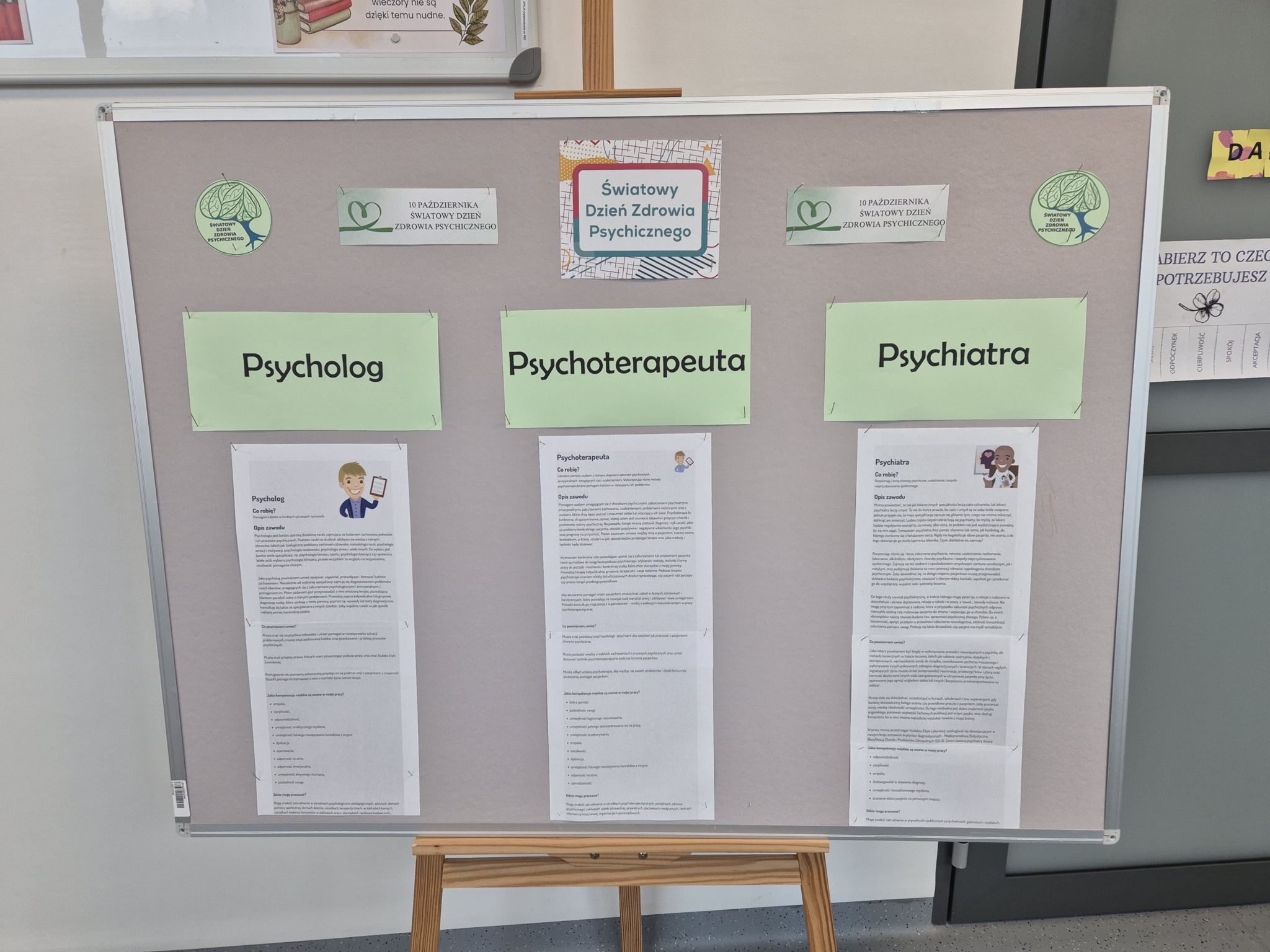 Z tej okazji przygotowana została także okolicznościowa gazetka, przybliżająca tematykę zdrowia psychicznego oraz zawodów związanych z jego ochroną – takich jak psycholog, psychiatra czy psychoterapeuta.