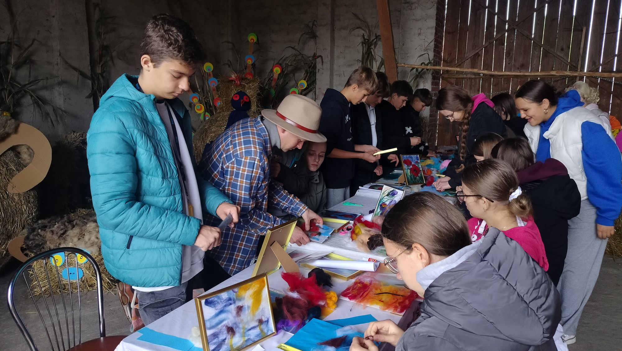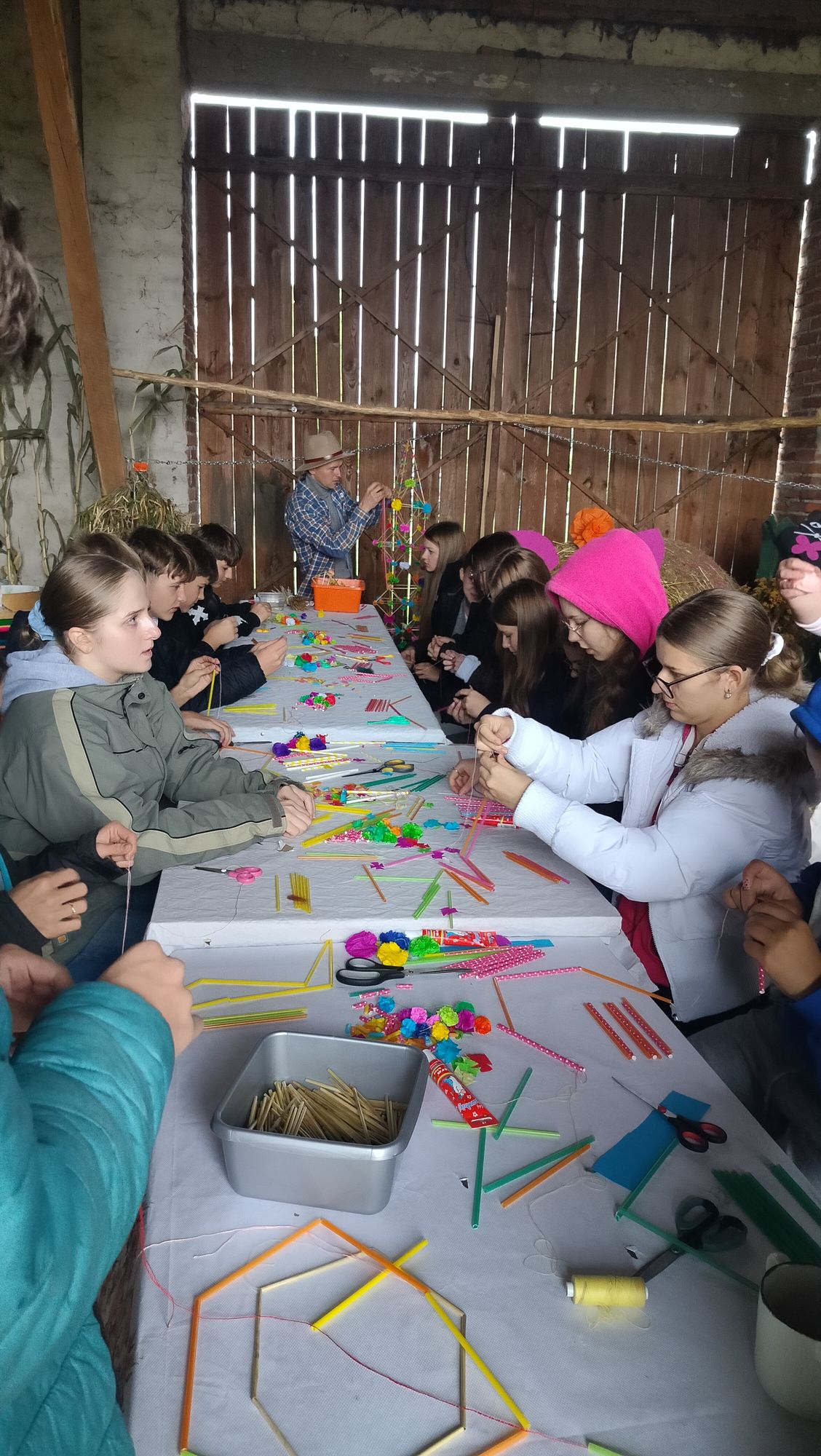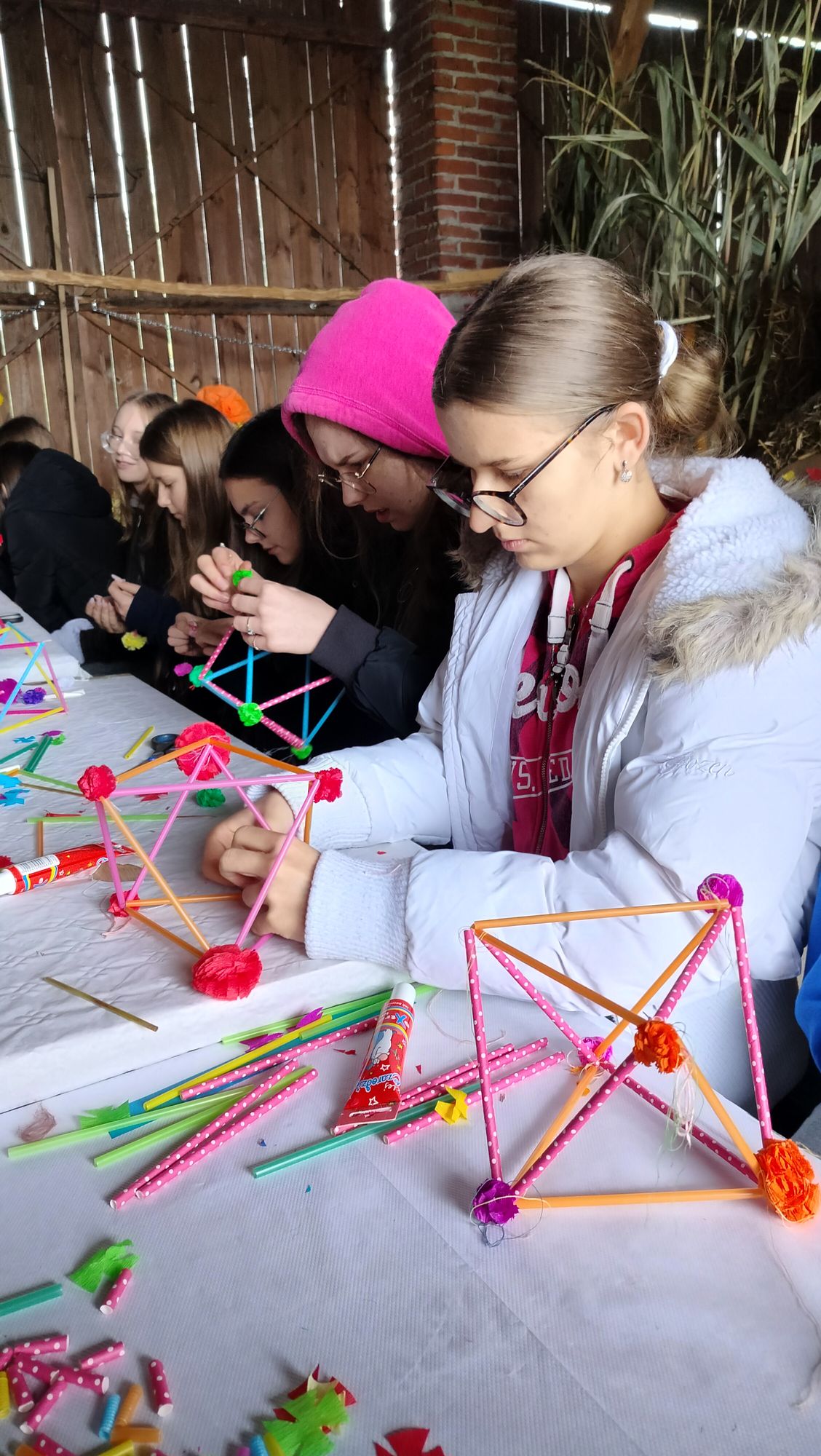 Pod czujnym okiem pana Michała Kuśmierka – pasjonata rękodzieła i znawcy tradycyjnych technik – uczniowie mieli okazję stworzyć niepowtarzalne obrazy z kolorowej wełny owczej oraz poznać tajniki wykonywania tradycyjnych pająków ludowych. Te dawne ozdoby, symbolizujące pomyślność i szczęście w domu, stały się inspiracją do twórczej pracy, której efekty zachwyciły wszystkich uczestników.