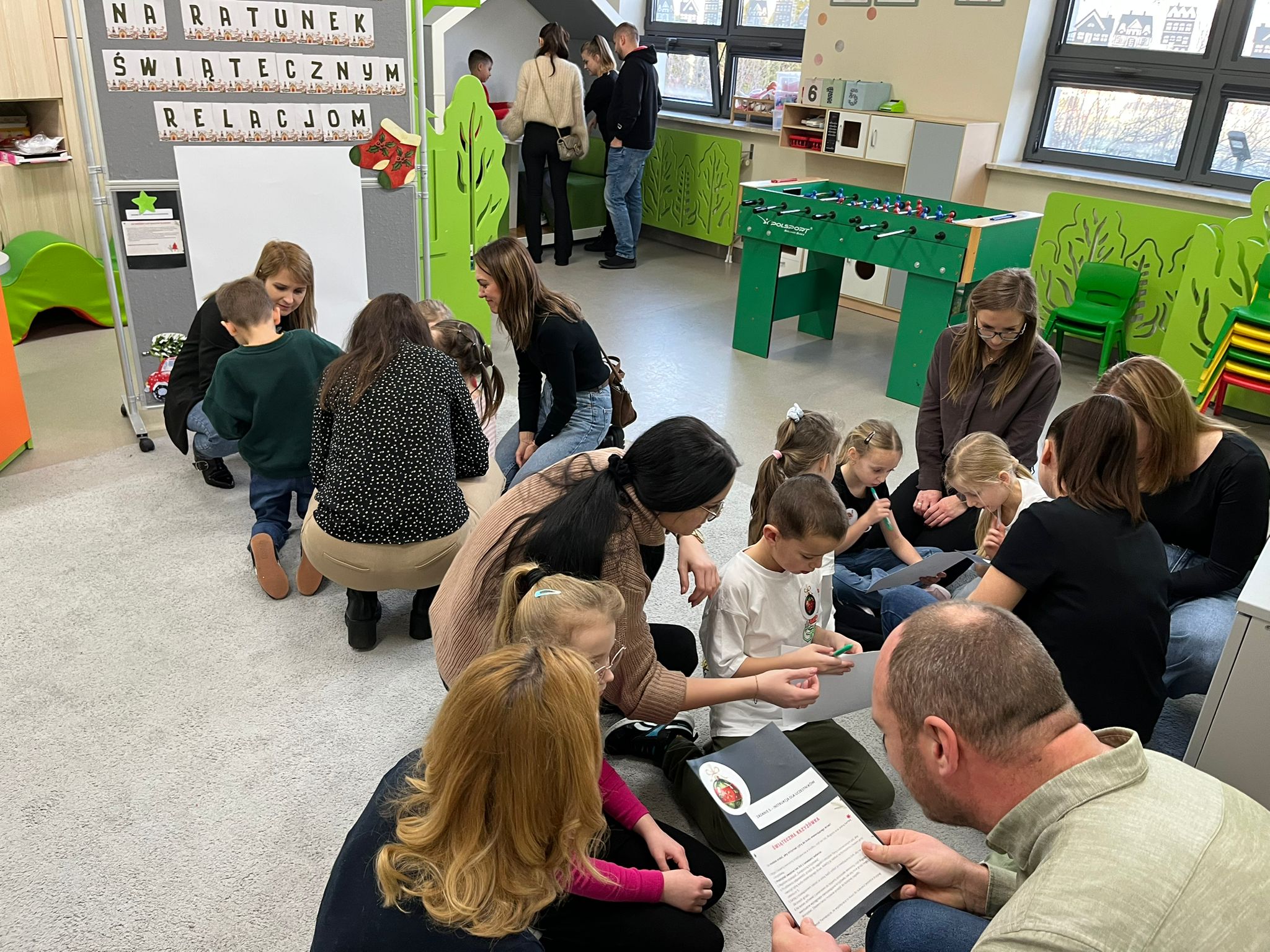 17 grudnia w klasie 1a odbyły się zajęcia otwarte zorganizowane przez panie Malwinkę, Sylwię oraz Karolinę. Było to wyjątkowe spotkanie w formie świątecznego escape roomu pt. „Na ratunek świątecznym relacjom”, które cieszyło się bardzo dużym zainteresowaniem. Rodzice przybyli niezwykle licznie i z ogromnym zaangażowaniem włączyli się w przygotowane aktywności.