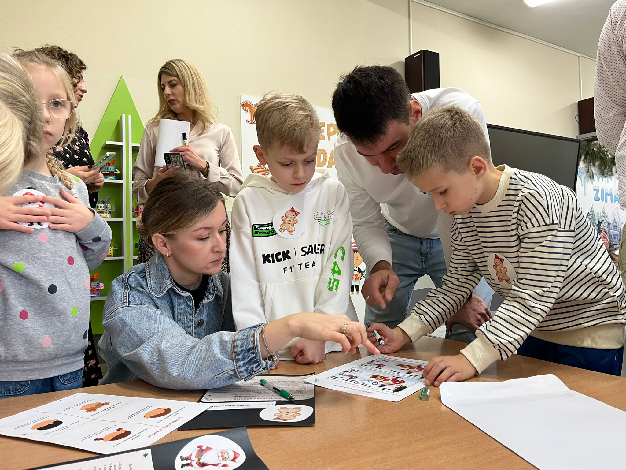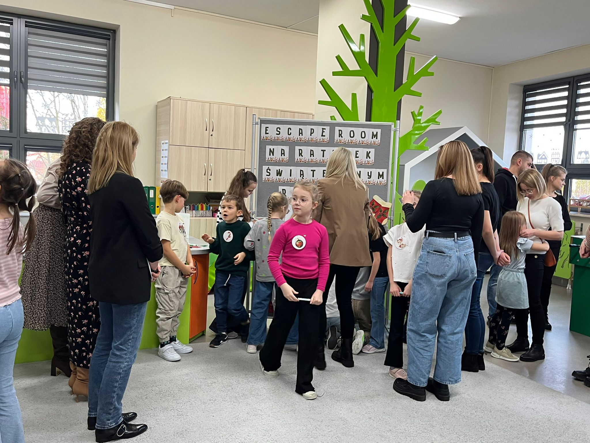 Uczniowie wraz z rodzicami rozwiązywali świąteczne zagadki i wykonywali kolejne zadania, które wymagały współpracy, logicznego myślenia oraz wzajemnej pomocy. Dzięki prawidłowym rozwiązaniom poszczególnych zadań dzieci stopniowo zdobywały wskazówki, które pozwoliły im odgadnąć kod kończący cały escape room i zakończyć misję sukcesem. Wspólne działanie sprzyjało budowaniu relacji, integracji oraz wprowadziło wszystkich w radosny, świąteczny nastrój.