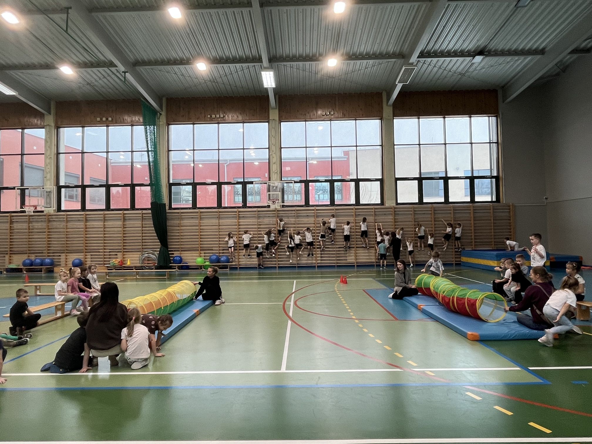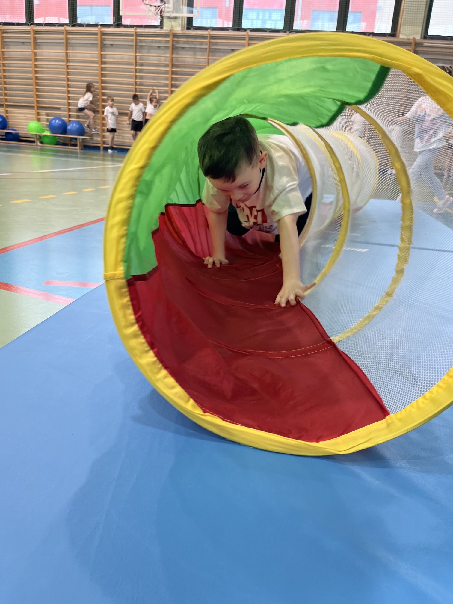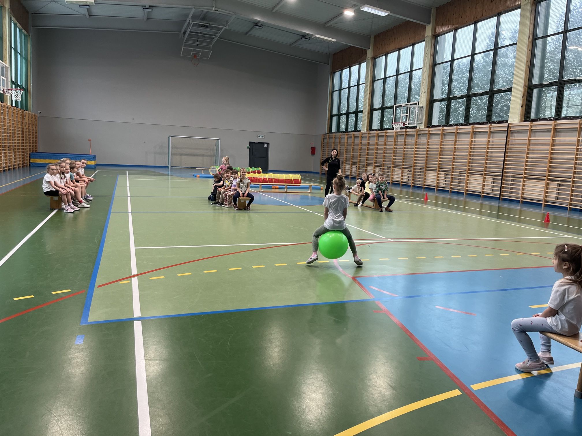 Zajęcia prowadzili nauczyciele wychowania fizycznego – pani Ewelina oraz pan Wojtek, którzy przygotowali wiele wspaniałych i atrakcyjnych zabaw oraz konkurencji ruchowych. W programie znalazły się m.in. slalom, skoki w workach, toczenie piłki oraz inne ćwiczenia rozwijające sprawność, koordynację ruchową i umiejętność współpracy w grupie. Wszystkie konkurencje przebiegały w radosnej atmosferze, pełnej uśmiechu, zdrowej rywalizacji i wzajemnego dopingu. Po zakończeniu zawodów na uczestników czekał mały poczęstunek, a każdy mały sportowiec otrzymał upominek, który był miłym zwieńczeniem tego aktywnego i pełnego wrażeń dnia.